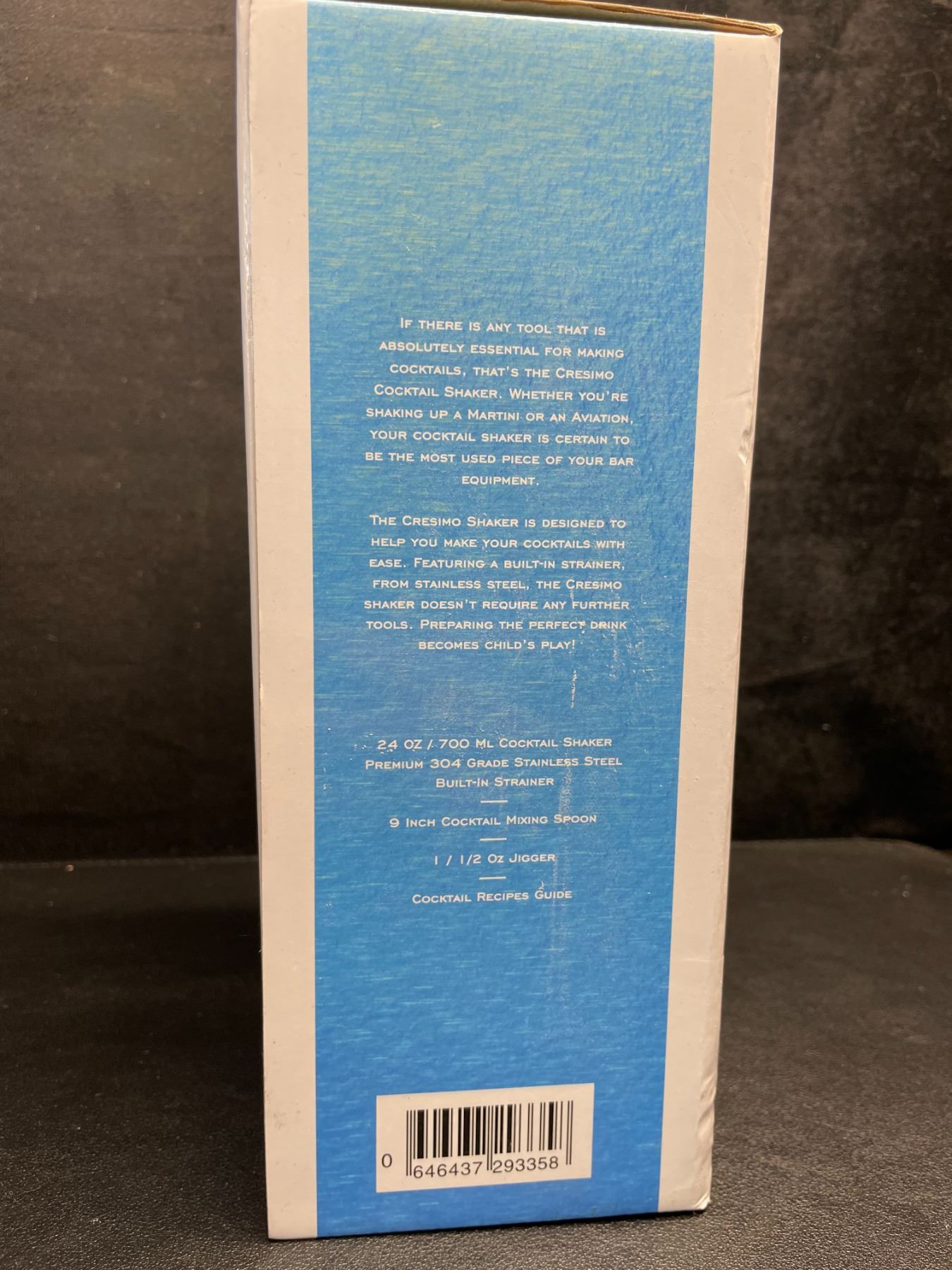Cresimo Cocktail Shaker Set (24oz) Mixology Bartender 3PC Kit; Stainless Steel Drink Shaker - New