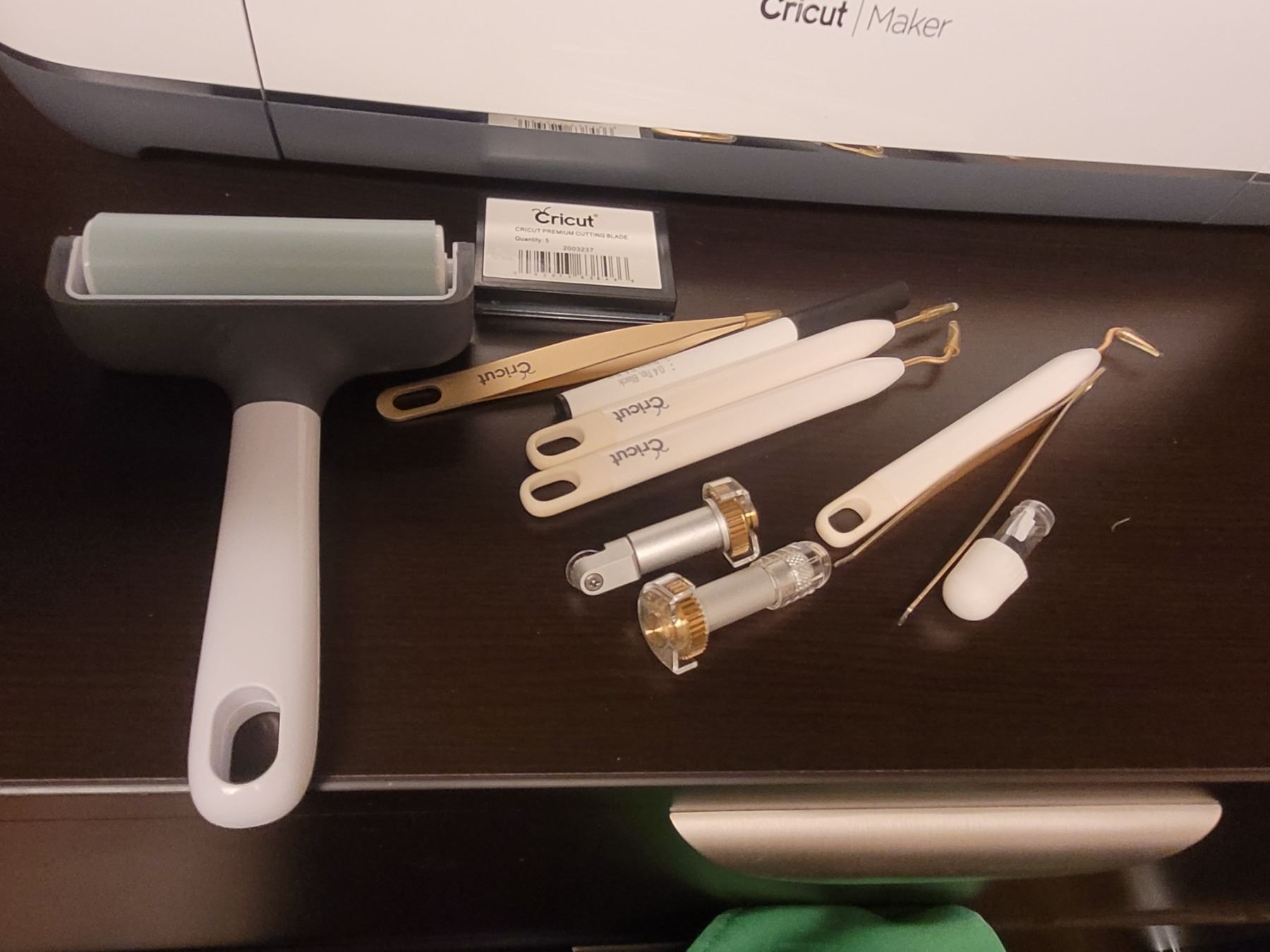 Cricut cutting machine for different patterns, etc. includes tools. Pick up 9-10