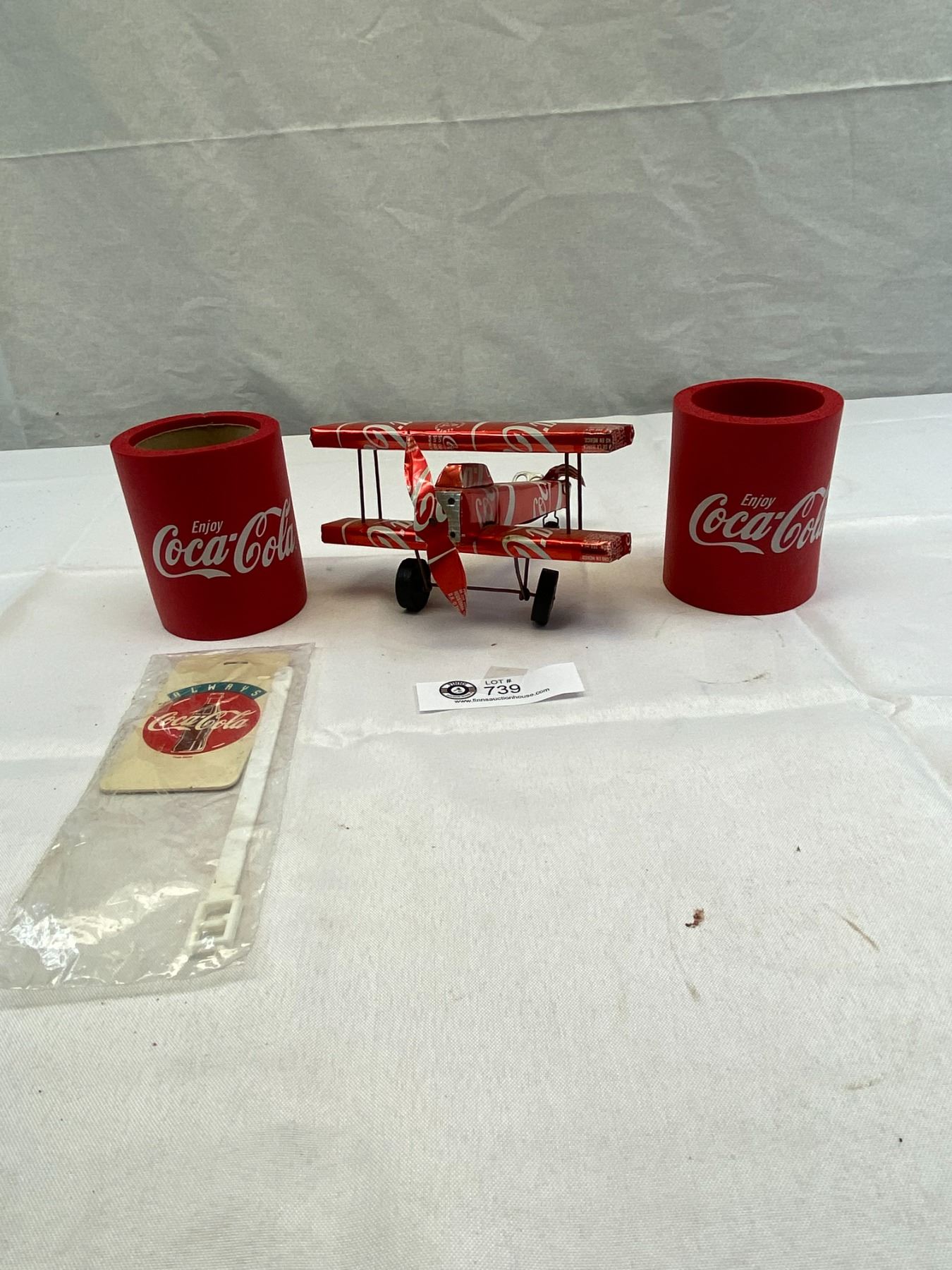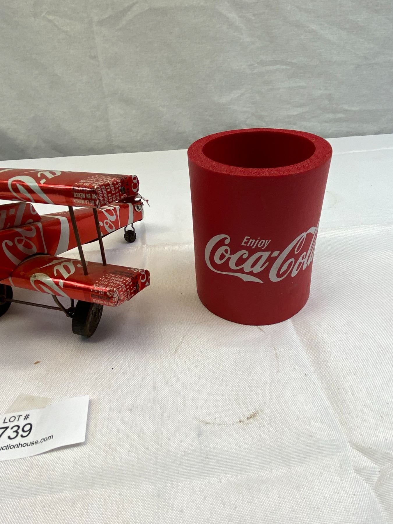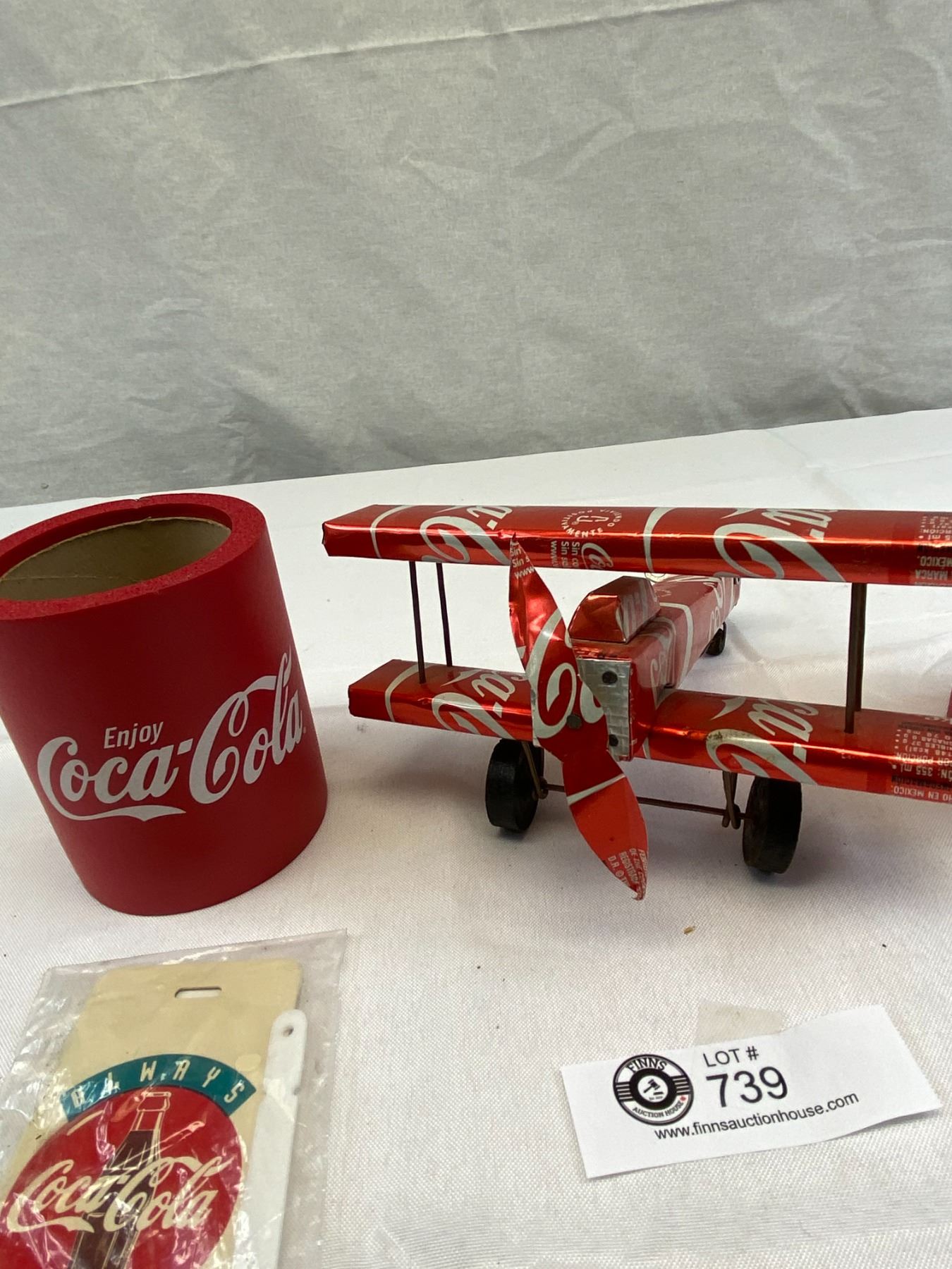 Custom Made Coca-Cola Airplane Made From Cans Plus 2 Cup Holders And Coca-Cola Luggage Tag