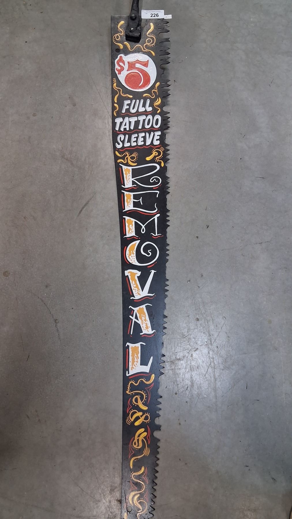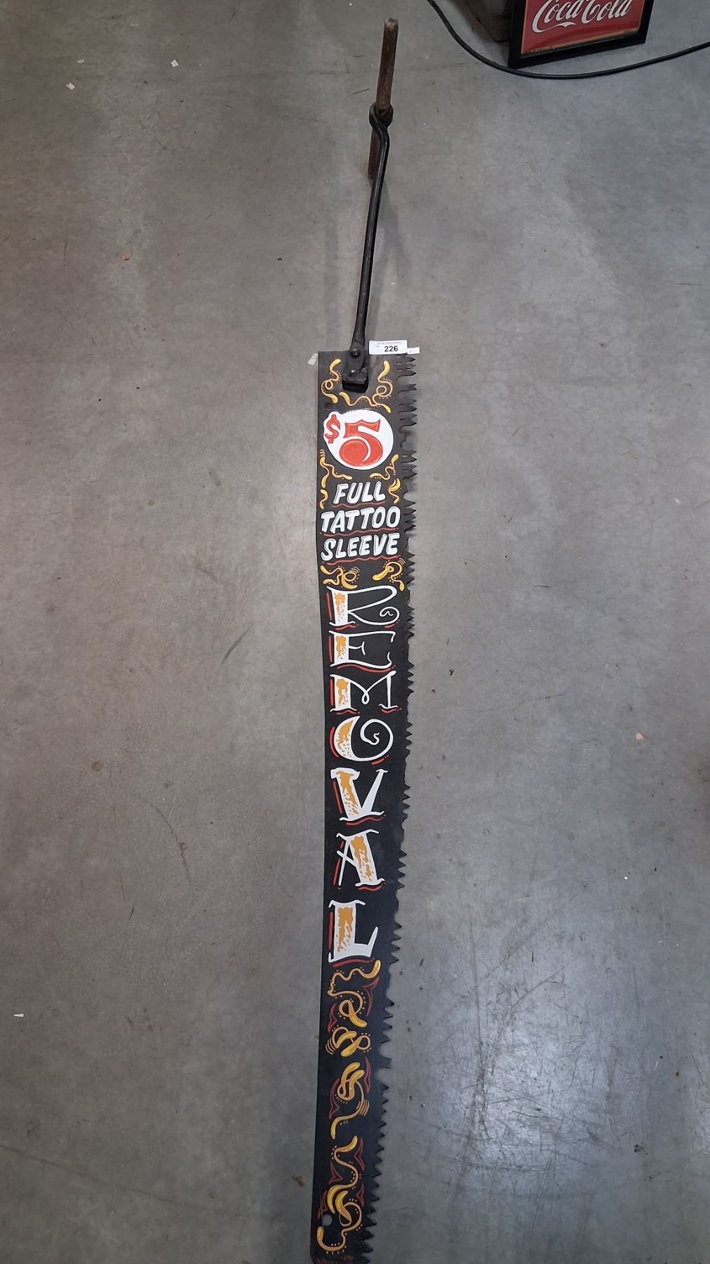 Custom hand painted antique saw, by Kreepy Keith, 73" tall