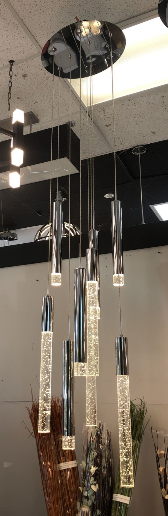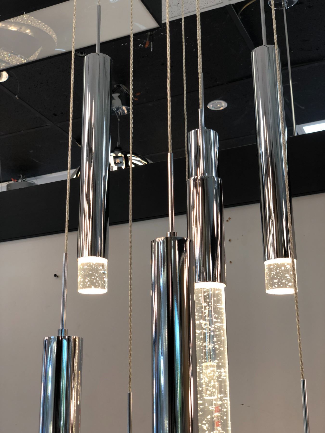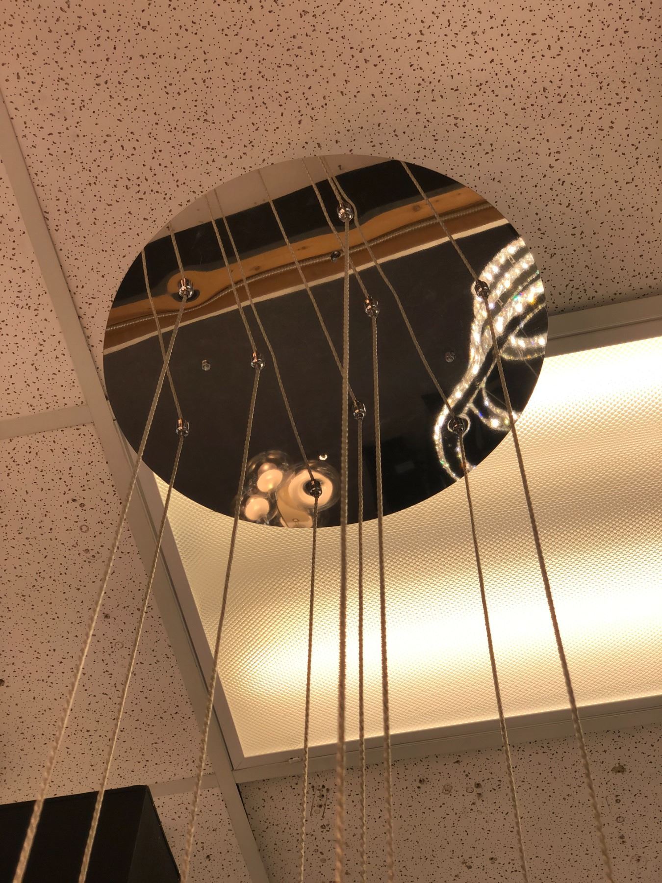 Custom made contemporary string chandelier (bidder is responsible for removal)