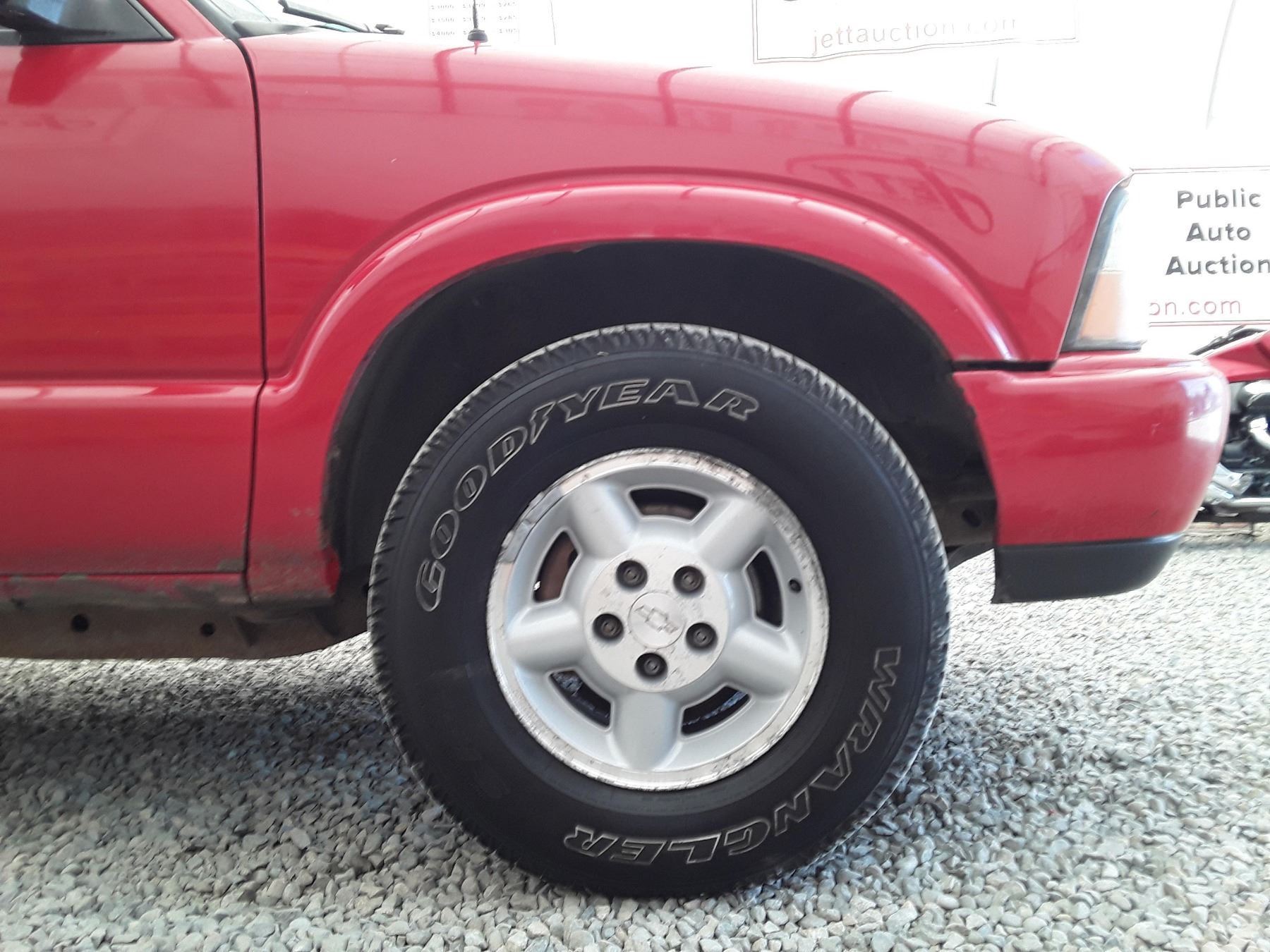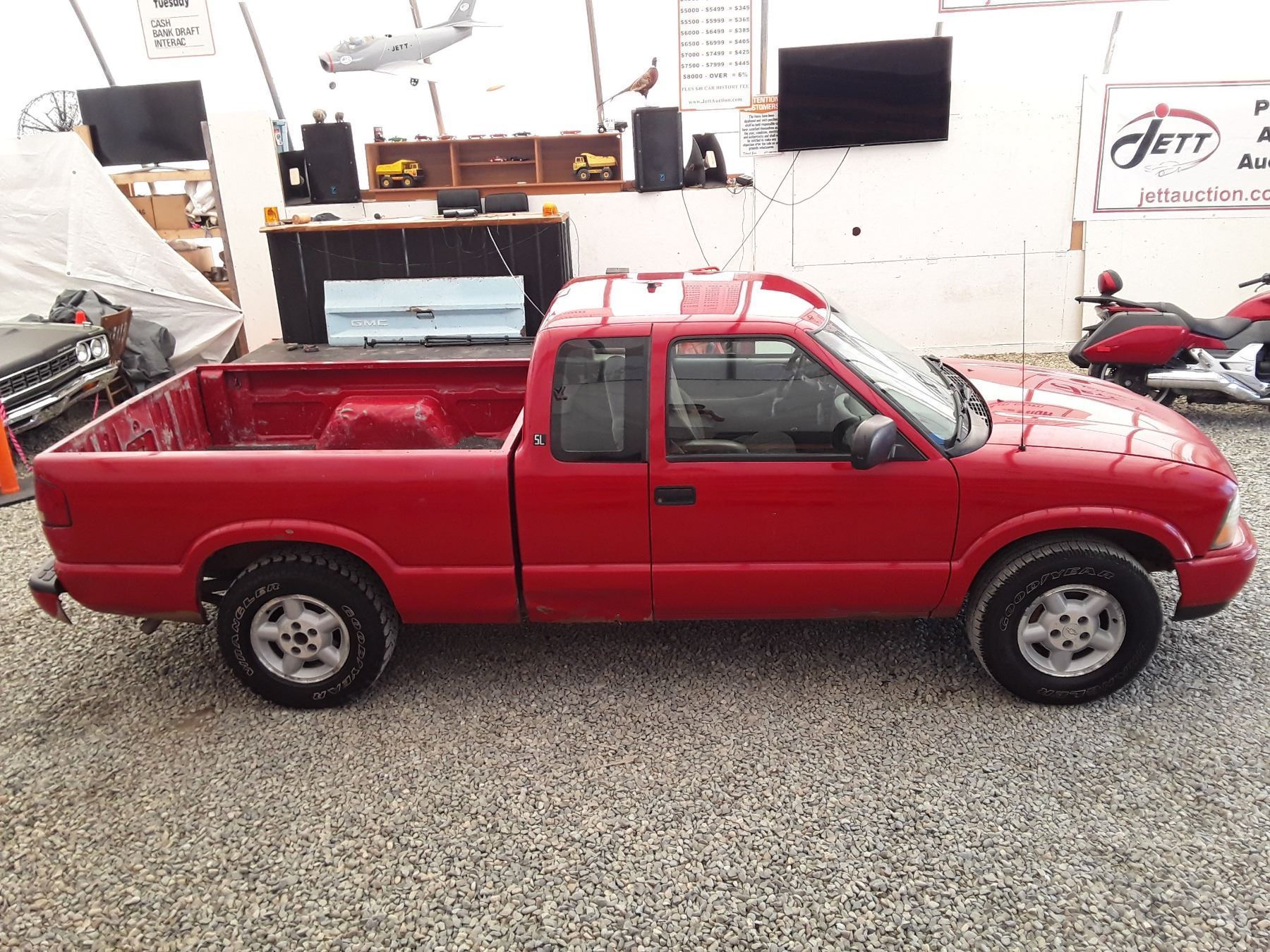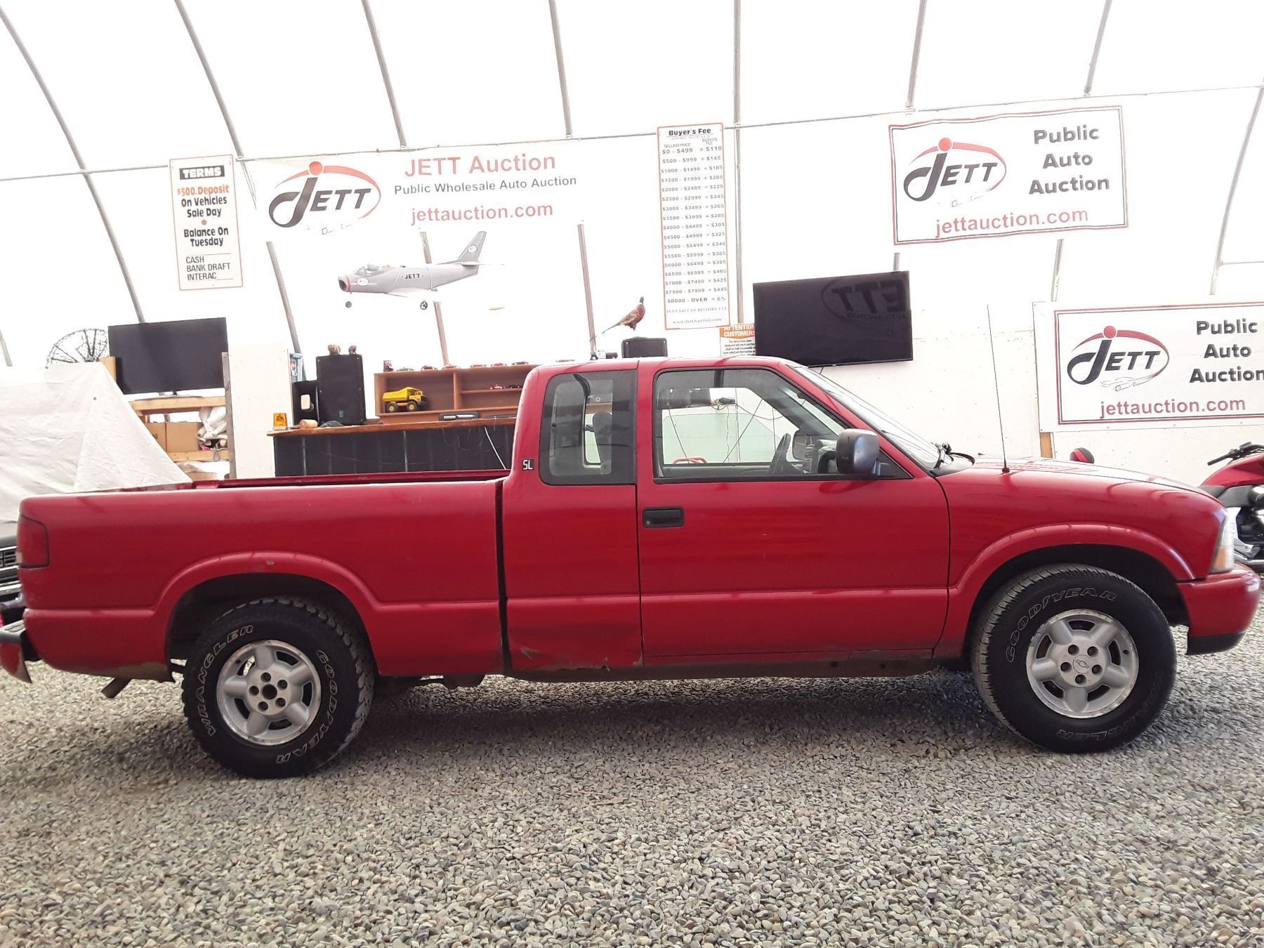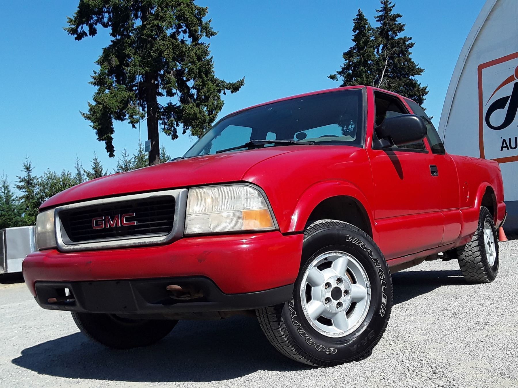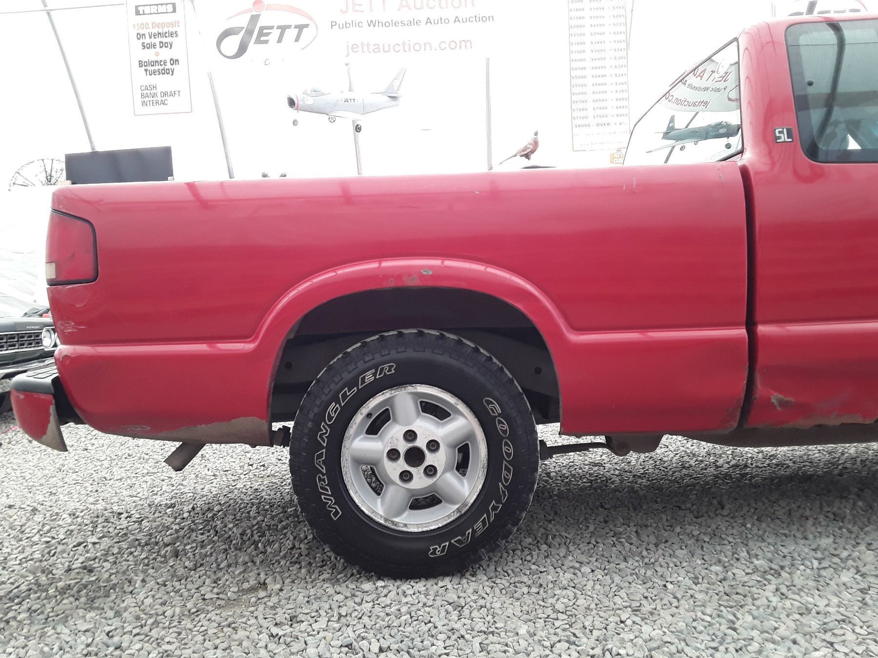 Manual transmission and 4.3 Litre Engine, 6 cylinder , Four Wheel Drive, 157624 MILES Red, 2 PassengerDeclarations - , BC Registered, No Reported Accidents,Power Steering, Power Brakes,, Intermittent Wipers, Dual Air Bag, AM/FM Stereo , Rear Defroster, Bucket Seats, Anti Lock Brakes, Front Disc Brakes-Air Conditioning, Tilt Steering, Cruise Control, Alloy Wheels, Good Tire TreadAuction Notes : Good Year Wranger Tires