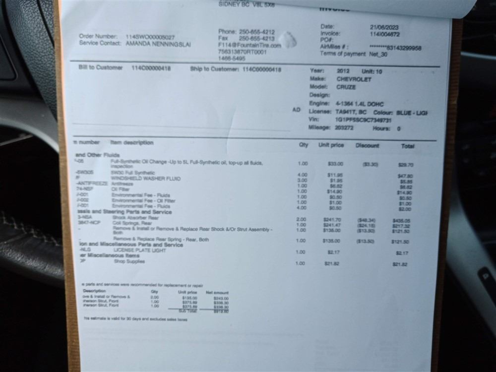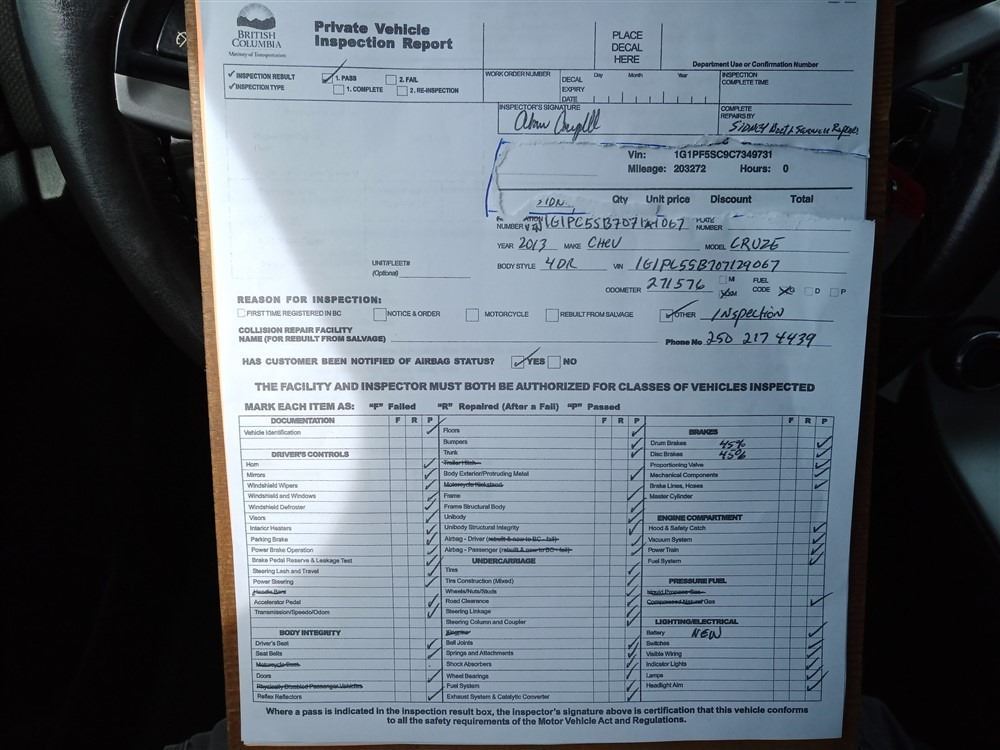 Automatic with TIPtronic transmission and ECOTEC 1.4 Litre Engine, 4 Cylinder, Front Wheel Drive, 271767Black, 5 PassengerNo Declarations - BC Vehicle, No Accidents over $2000, Declarations - Ex Lease,Power Steering, Power Brakes, Intermittent Wipers, Dual Air Bag, AM/FM Stereo , Rear Defroster, Bucket Seats, Anti Lock Brakes, Front Disc Brakes-Air Conditioning, Power Windows, Power Locks, Keyless Entry, Tilt Steering, Cruise Control, CD Player, Bluetooth, Power Seats, Information Center, Back Up Camera, Traction Control, Steering Wheel Controls, Spare Key, Newer Battery, Power Mirrors, Chip / Crack in windshield Auction Notes : Came From A Company Downsizing their Fleet, Comes With Vehicle Inspection Report And Reciept For Recent Work, New Battery, Alternator Replaced, New Belt Tensioner, More Reciepts, Vehicle Serviced, New Spark Plugs, New Rear Suspension And More, See Photos, Spare Key, Newer Battery