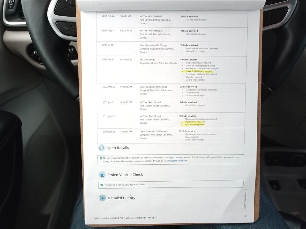Automatic transmission and 3.6 Litre Engine, 6 cylinder , Front Wheel Drive, 185517 KilometersWhite, 7 Passenger Declarations - Damage Under $2000 No Reported Accidents, -Power Steering, Power Brakes, Intermittent Wipers, Dual Air Bag, AM/FM Stereo , Rear Defroster, Bucket Seats, Anti Lock Brakes, Front Disc Brakes-Air Conditioning, Power Windows, Power Locks, Keyless Entry, Tilt Steering, Cruise Control, Alloy Wheels, Anti Theft, Bluetooth, Leather Seats, Power Seats, Heated Seats , Heated Mirrors, Information Center, Navigation, Back Up Camera, Parking Sensors, Traction Control, Fog Lights, Roof Rack, Remote StartAuction Notes : Push Button Start, Push Button Park Brake, Keysense, Power Rear Hatch, Power Rear Sliding Doors, Power Mirrors, Carfax Shows Front + Rear Brakes Replaced In June 2022, Brakes - Front 90 % Rear 90 % Engine Light Flashing, Horn Not Working