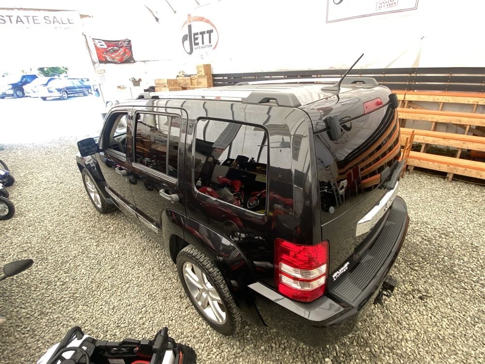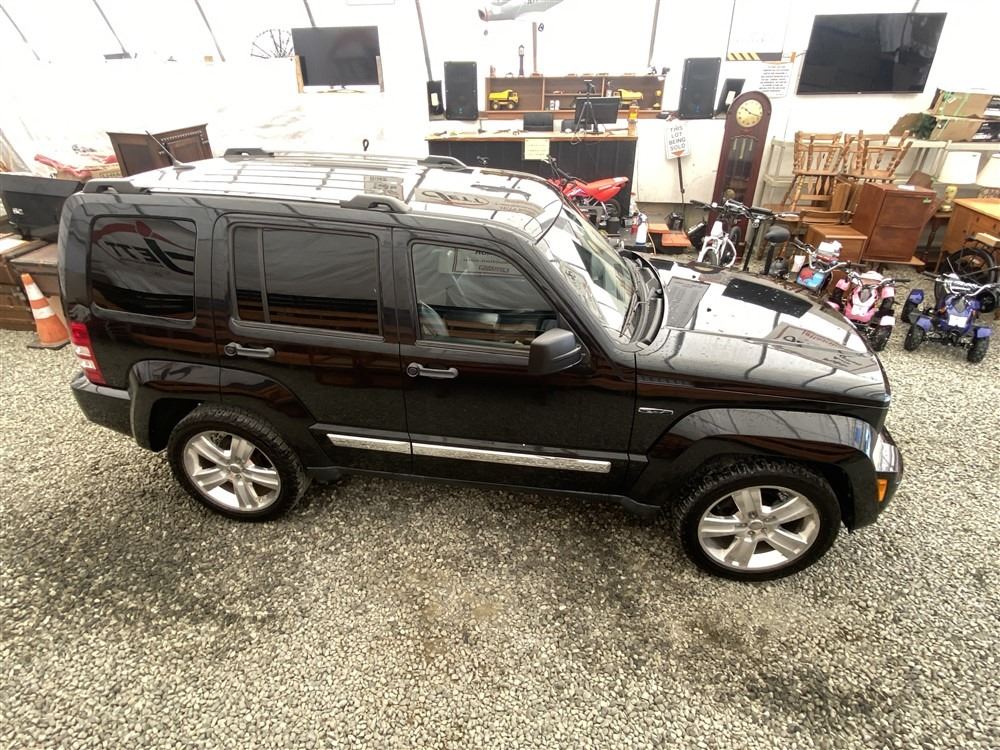 2012 JEEP LIBERTY, BLACK, 209775 KMS, 3.7L, 6 CYLINDER, GASOLINE, AUTOMATIC, TRANSMISSION, FOUR WHEEL DRIVE, 5 PASSENGER. AIR CONDITIONING, POWER WINDOWS, POWER LOCKS, KEY-LESS ENTRY, TILT STEERING, CRUISE CONTROL, ALLOY WHEELS, ANTI THEFT, DUAL AIR BAGS, CD PLAYER, BLUETOOTH, LEATHER SEATS, POWER SEATS, HEATED SEATS, MEMORY SEATS, HEATED MIRRORS, TRACTION CONTROL, STEERING WHEEL CONTROLS, ROOF RACK, TOW PACKAGE, TRAILER BRAKE CONTROL, POWER MIRRORS, NO REPORTED ACCIDENTS., SPLIT-FOLDING REAR SEATS. DECLARATIONS: NO DECLARATIONS 0 ACCIDENTS 2 GLASS CLAIM, TOTALING $861. GOOD SERVICE HISTORY, CARFAX SHOWING 30 RECORDS.