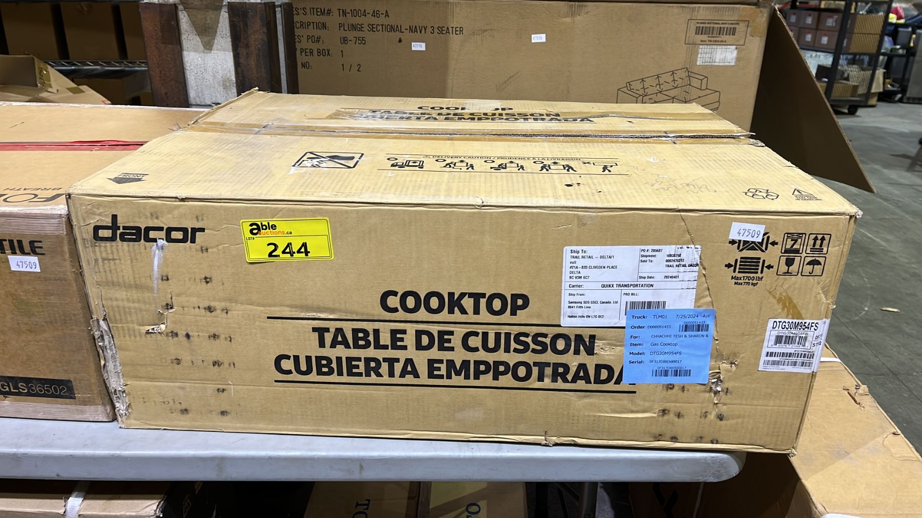 It is the sole responsibility of the purchaser/bidder to remove their purchased lots within the prescribed time. Able Solutions Inc. will NOT provide any delivery or transport of any nature for live auction items.