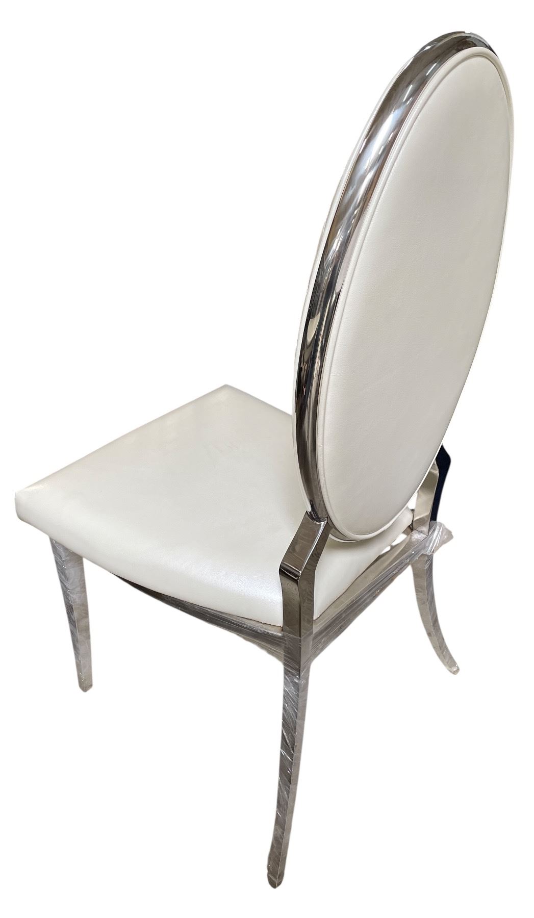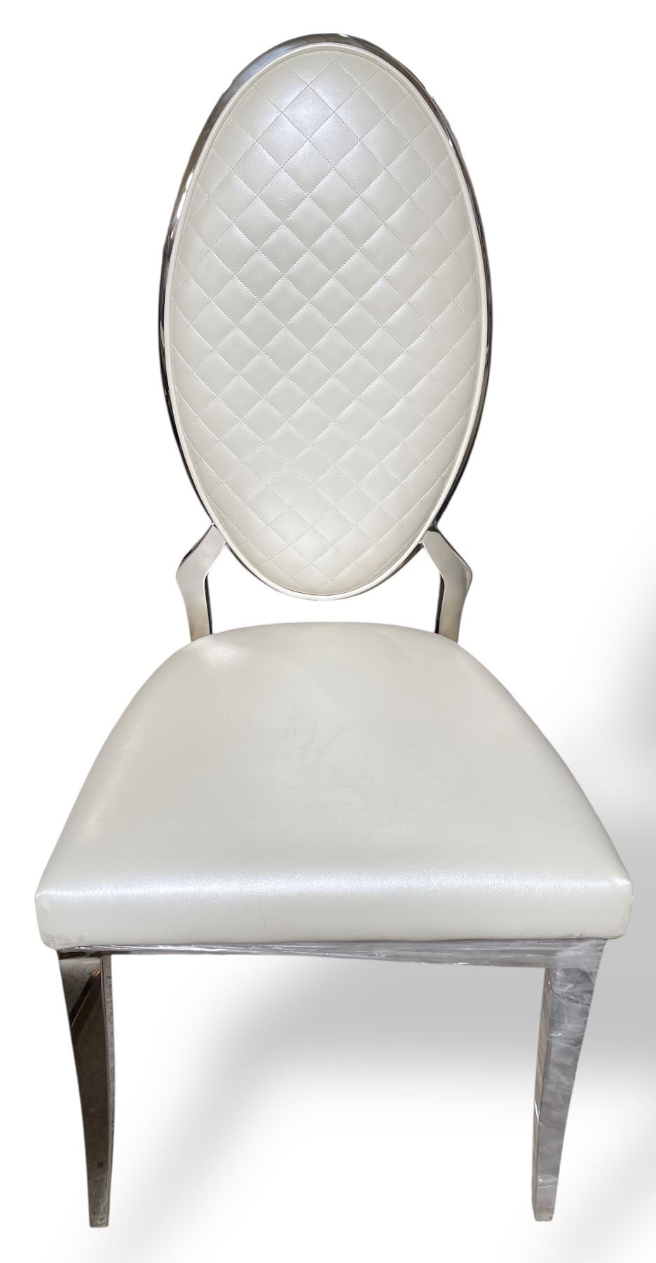 DAH - BNIB Set of 3 White Pearl Chairs with Silver Legs and Oval Backrest