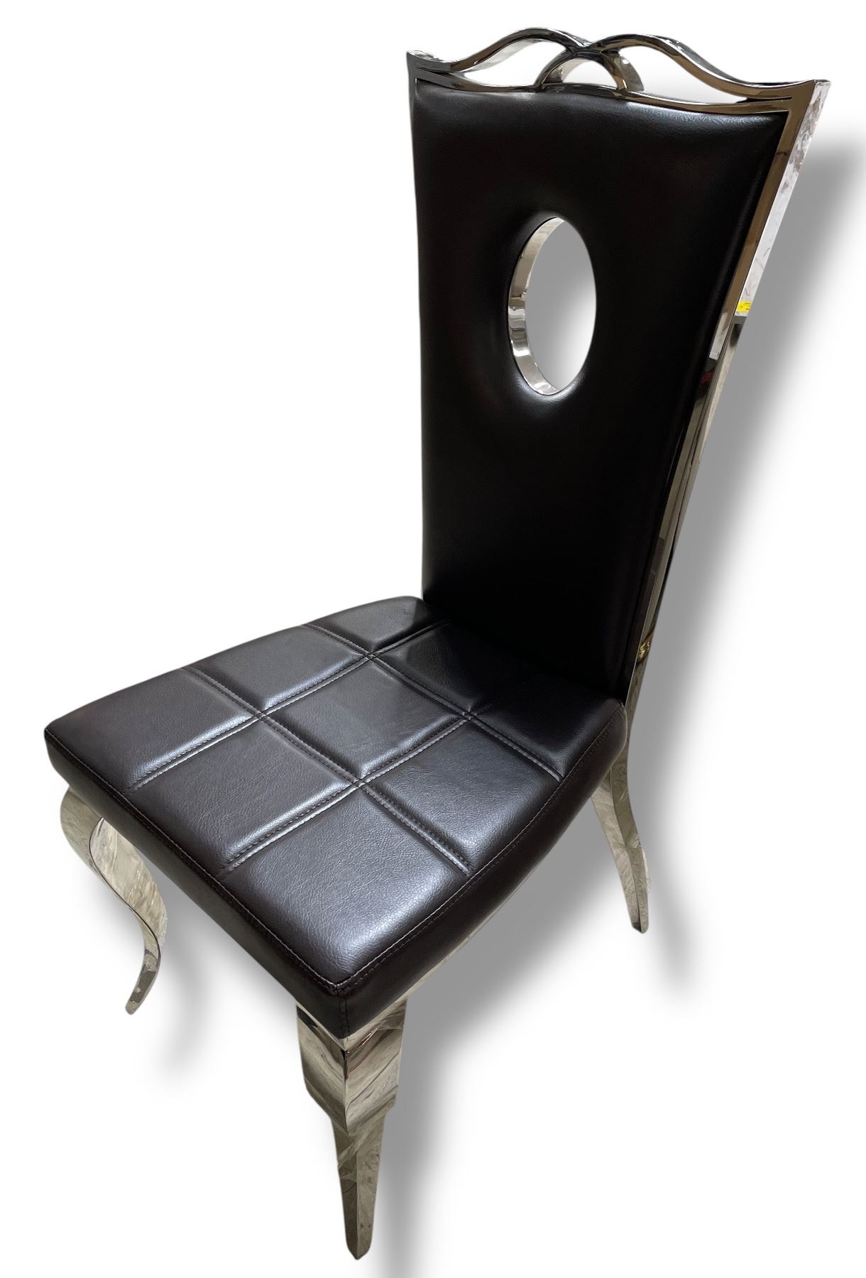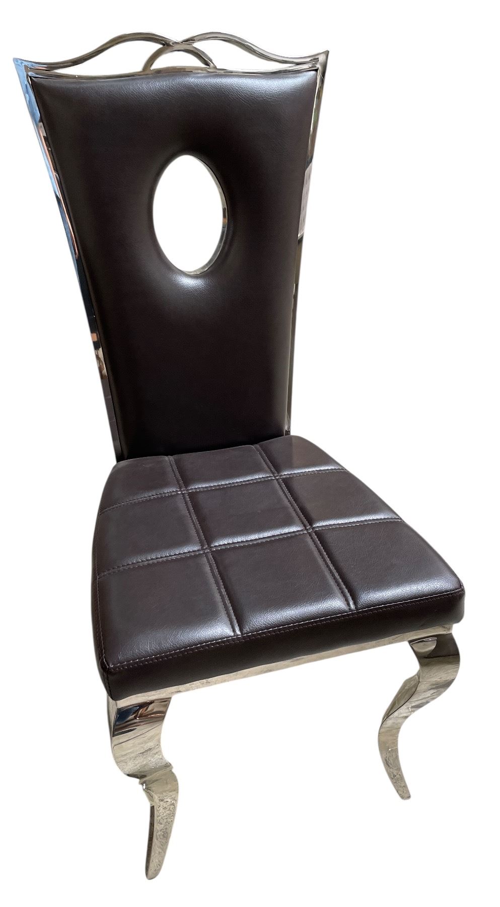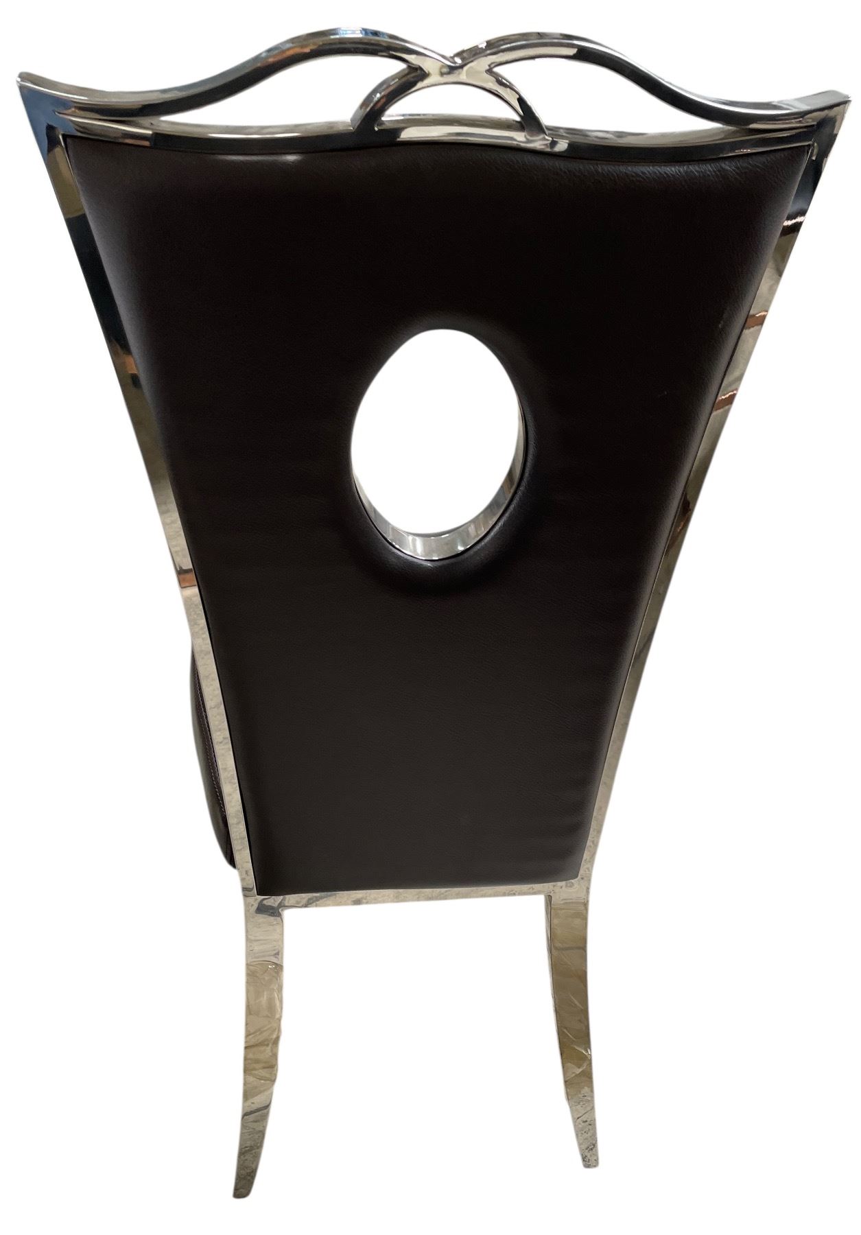 DAH - New Dark Brown Dining Chair with Circular Cutout Back and Chrome Legs