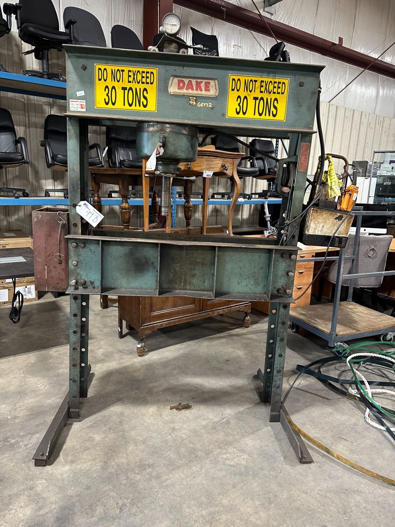 DAKE MODEL 75M 30 TON HEAVY DUTY ADJUSTABLE INDUSTRIAL SHOP PRESS WITH HAND CONTROL ( DAMAGE TO HAND CONTROL )