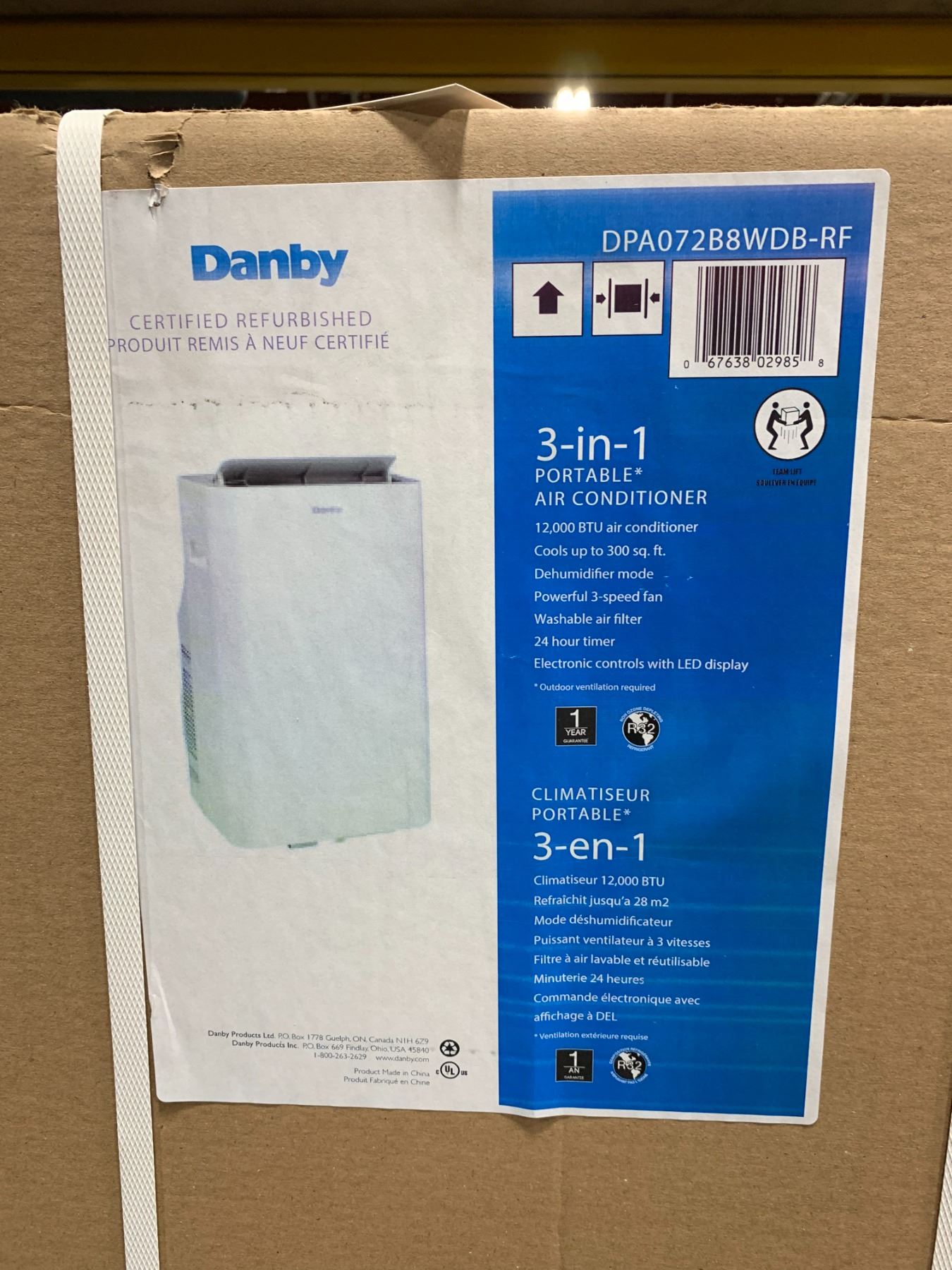 DANBY 3 IN 1 PORTABLE AIR CONDITIONER 12,000 BTU, COOLS UP TO 300 SQ FT, DEHUMIDIFIER MODE,
