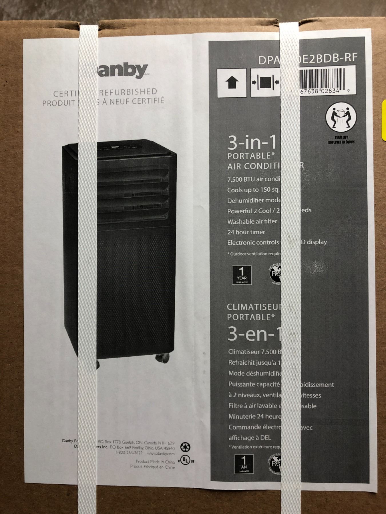 DANBY - Black 7,500 BTU 3 in 1 Air Conditioner Brand in box