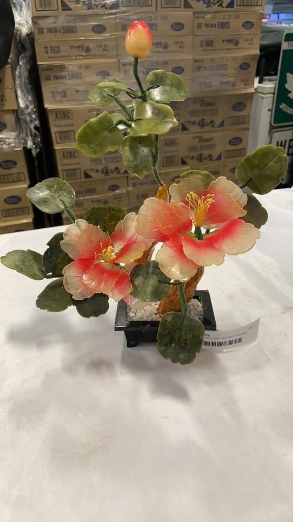 DARK GREEN, PINK, AND RED VINTAGE JADE BONSAI TREE