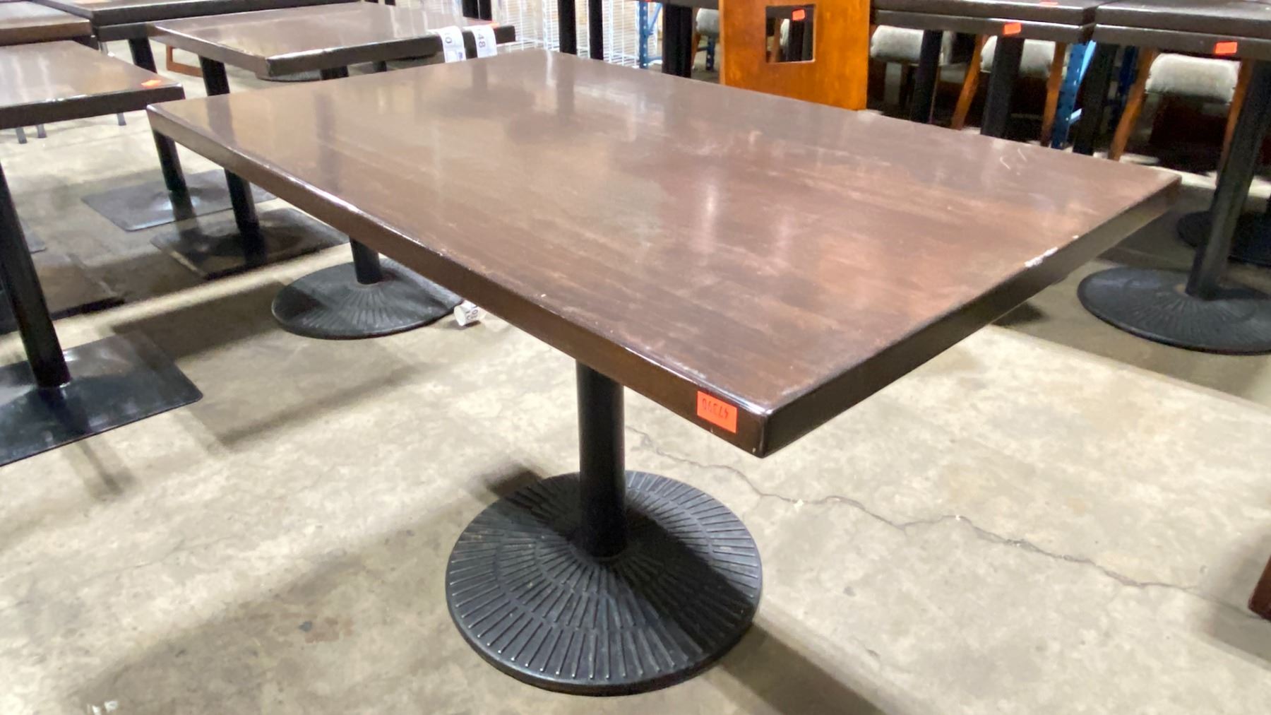 DARK WOOD 48"W X 30"D X 30"H BLACK METAL BASE RECTANGULAR COMMERCIAL RESTAURANT TABLE