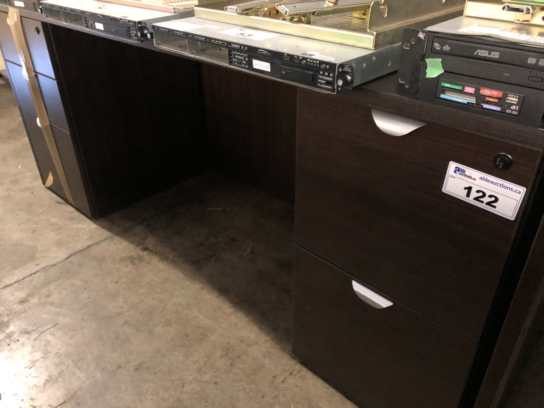 DARK WOOD 6' COMPUTER WITH 2 3 DRAWER PEDESTALS