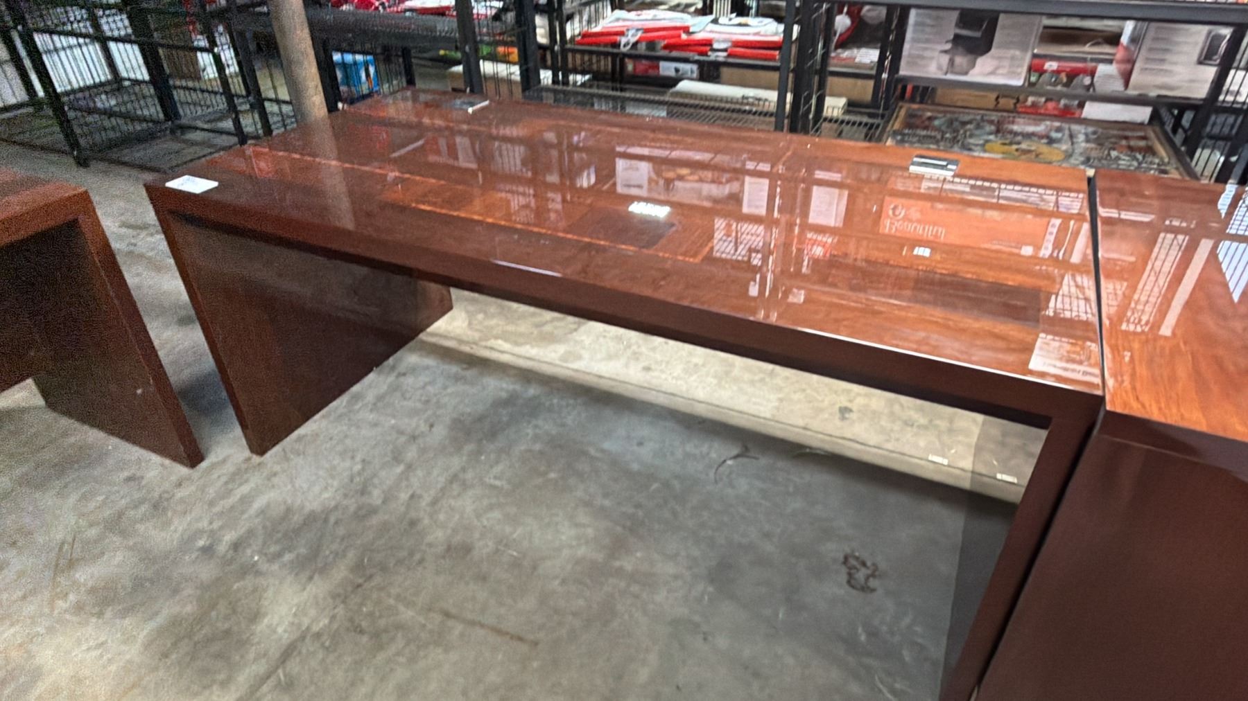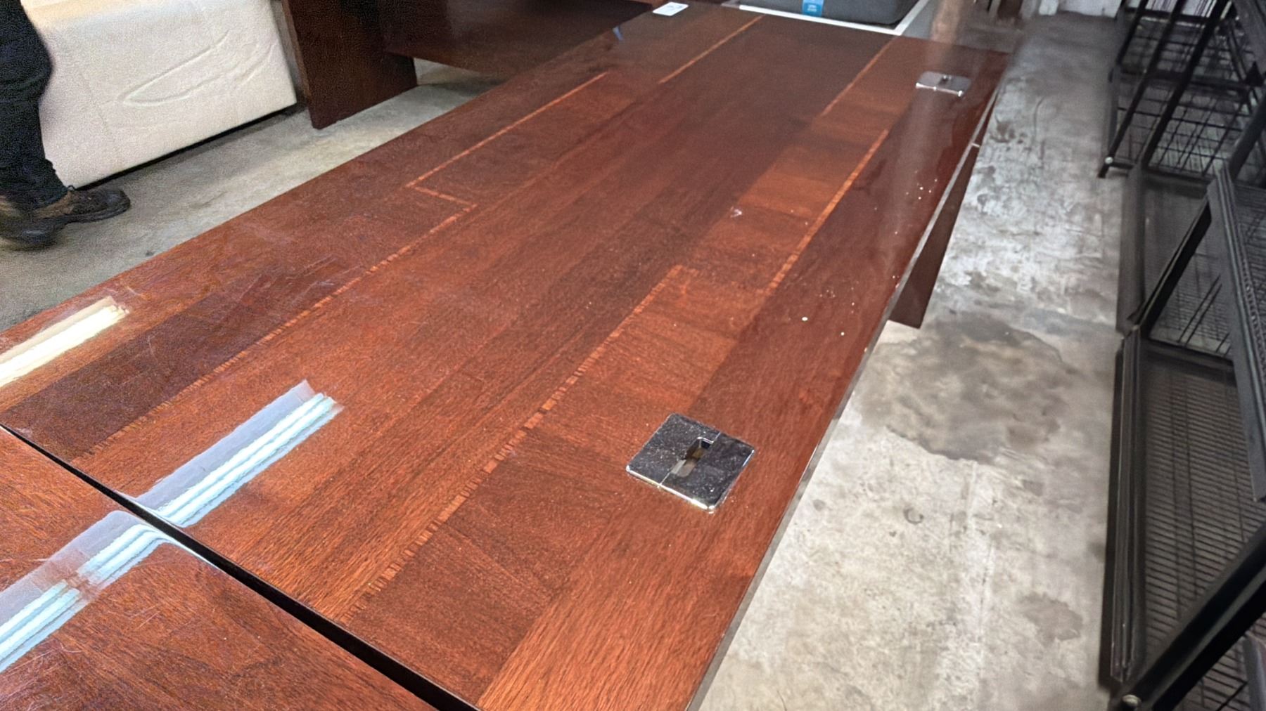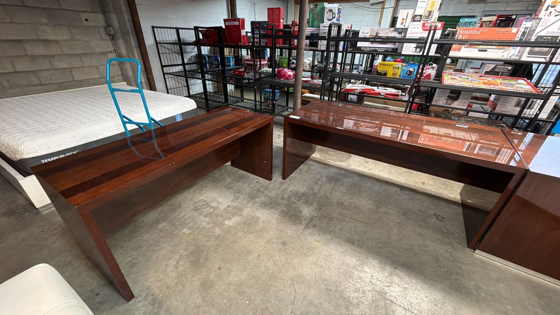 DARK WOODEN EXECUTIVE DESK WITH MATCHING SIDEBOARD - DESK MEASURES APPROX. 71"W X 34"D X 30"H,