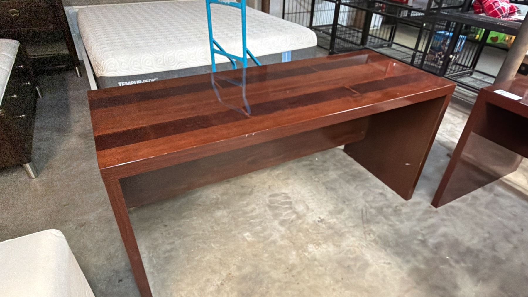 DARK WOODEN EXECUTIVE DESK WITH MATCHING SIDEBOARD - DESK MEASURES APPROX. 71 W X 34 D X 30 H,