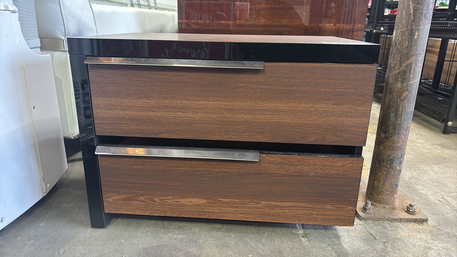 DARK WOODEN TWO DRAWER NIGHT STAND - APPROX. 28 1/2"W X 19"D X 20 1/2"H *MADE IN ITALY*
