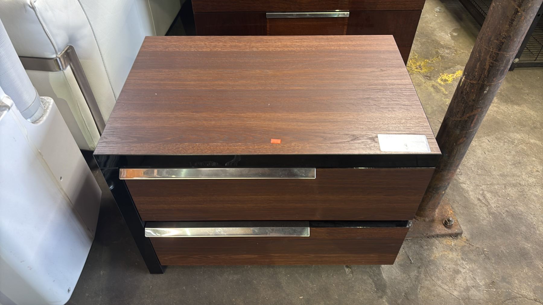 DARK WOODEN TWO DRAWER NIGHT STAND - APPROX. 28 1/2 W X 19 D X 20 1/2 H *MADE IN ITALY*