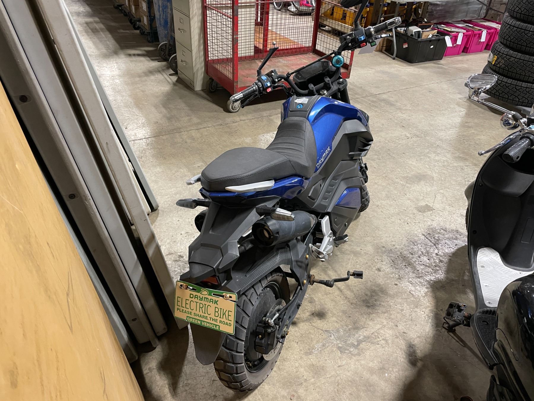 DAYMARK BLUE MOTORCYCLE LOOK ELECTRIC SCOOTER ( NO KEY, NO CHARGER, RUNNING CONDITION UNKNOWN )