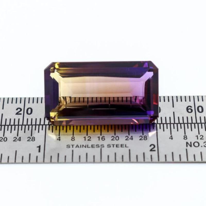 DAZZLING 28.60 CT BI COLOR AMETRINE.DISPLAYING BEAUTIFUL PURPLE AND GOLD HUE ALONG WITH VIVID STRONG SATURATION AND CLARITY.FINE EMERALD CUT MEASURING 14.6 x 26 x 9 mm.. NEAR FLAWLESS. ABSOLUTEELY STUNNING. HEATED TO ENHANCE COLOR.PERFECT FOR A PENDANT. ORIGIN : BOLIVIA