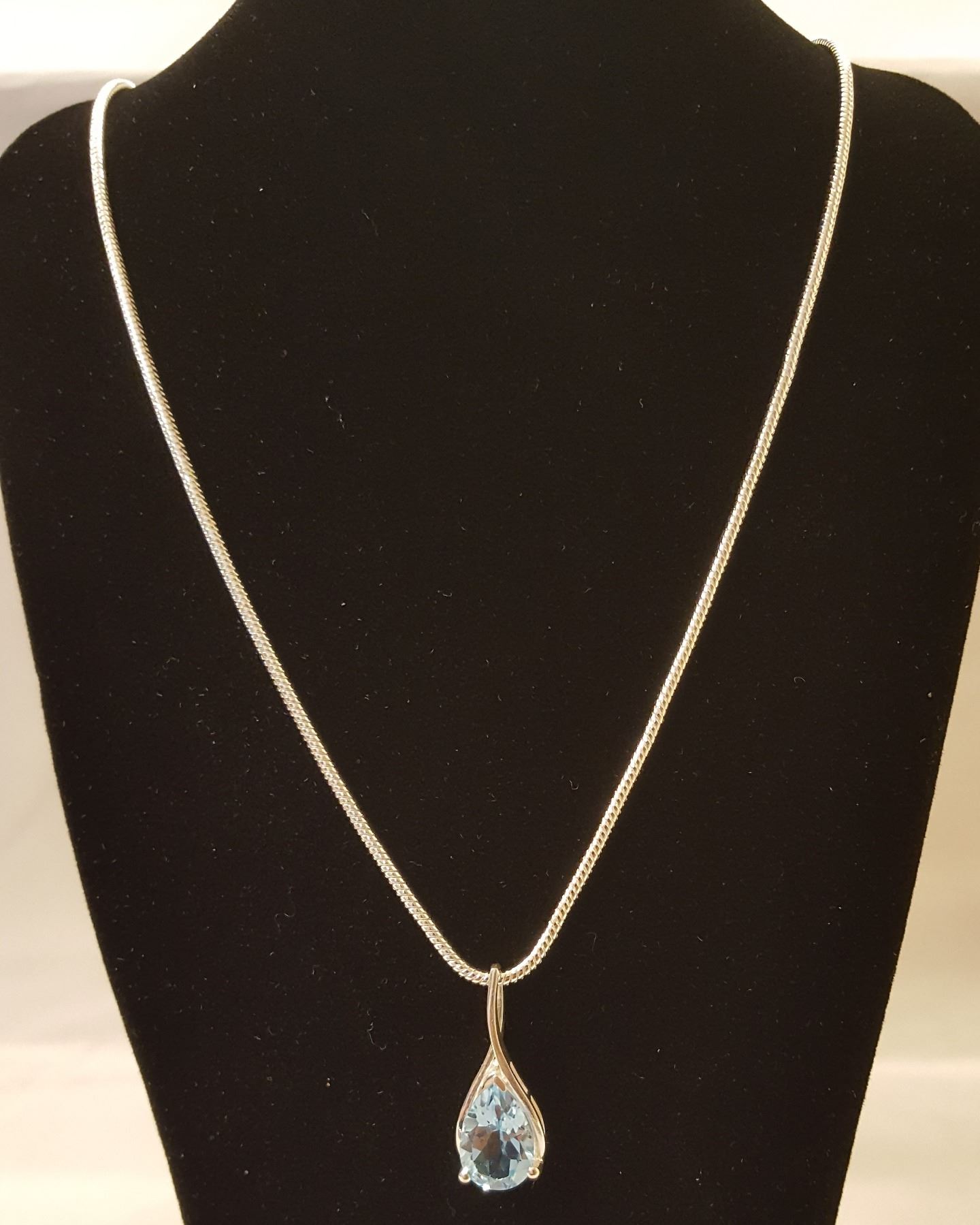 DAZZLING 3.5 CT SKY BLUE TOPAZ. MOUNTED IN SOLID .925 STERLING SILVER. INCLUDES 20 " LONG 2 MM CHAIN CTTW