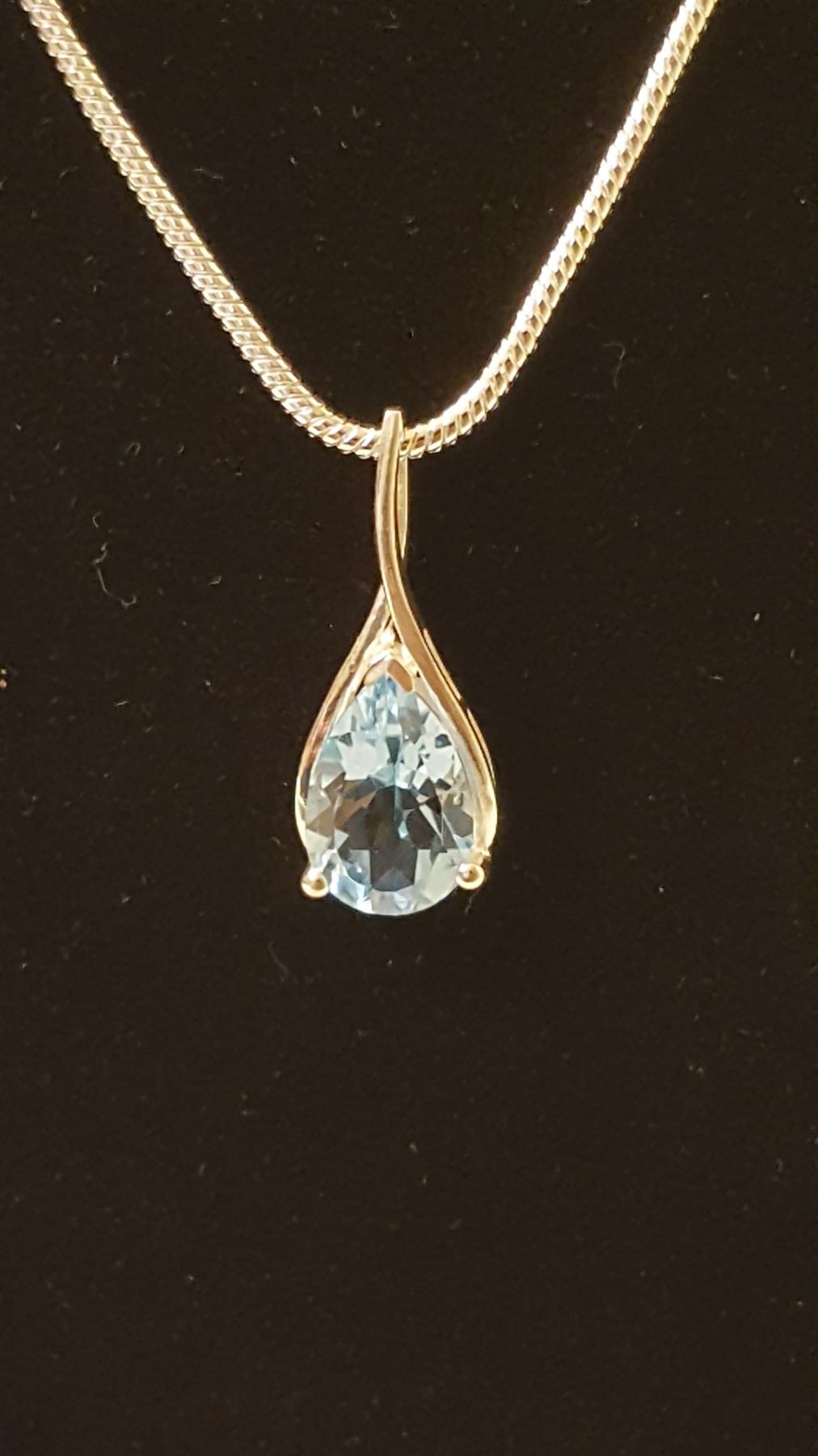 DAZZLING 3.5 CT SKY BLUE TOPAZ. MOUNTED IN SOLID .925 STERLING SILVER. INCLUDES 20 " LONG 2 MM CHAIN CTTW