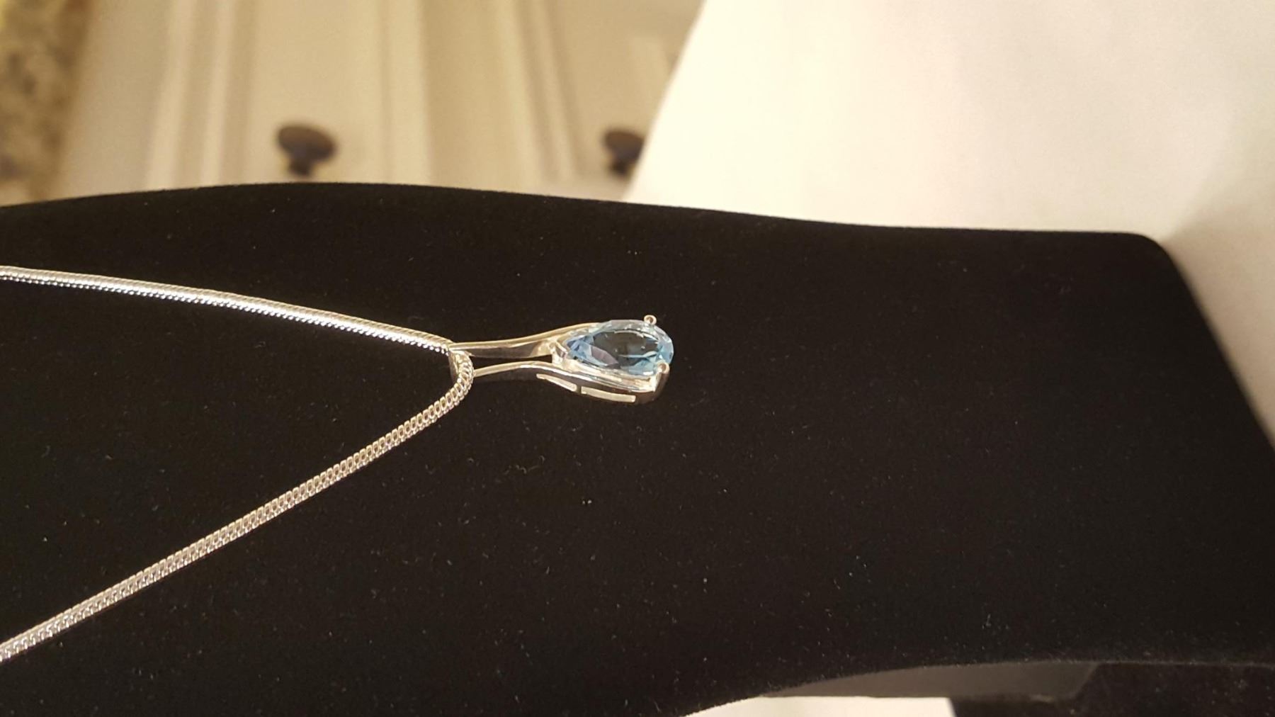 DAZZLING 3.5 CT SKY BLUE TOPAZ. MOUNTED IN SOLID .925 STERLING SILVER. INCLUDES 20 " LONG 2 MM CHAIN CTTW