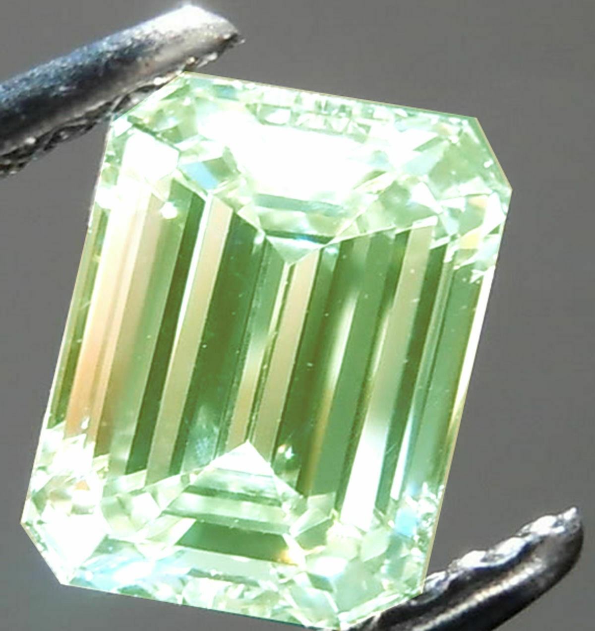 SPARKLING 3.88 CT MINT GREEN DIAMOND.THIS LAB LAB CREATED DIAMOND AS A FINE EMERALD CUT.EYE CLEAN. THIS LAB DIAMOND WILL TEST POSITIVE FOR A DIAMOND ON ANY DIAMOND TESTER.MOISSANITE IS THE WORLD'S MOST BRILLIANT GEM. WITH A REFRACTIVE INDEX OFf 2.65-2.69, MOISSANITE EXHIBITS MORE BRILLIANCE THAN A DIAMOND. AND THANKS TO A DISPERTION THAT'S 2.4 TIMES HIGHER THAN A DIAMOND, MOISANITE BENDS LIGHT INTO MESMERIZING RAINBOW ELECTRIC FLASHES OF FIRE... MORE THAN "TWICE " AS MUCH AS A DIAMOND. BY DAY AND BY NIGHT MOISANITES LEGENDARY BRILLANCE IS SPECTACULAR. NEAR FLAWLESS AND READY TO MOUNT.