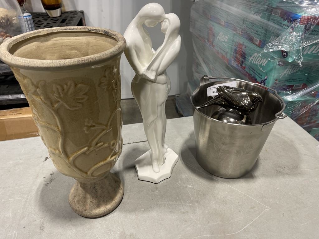 DECORATIVE FIGURE, BUCKET, BIRD AND PLANTER