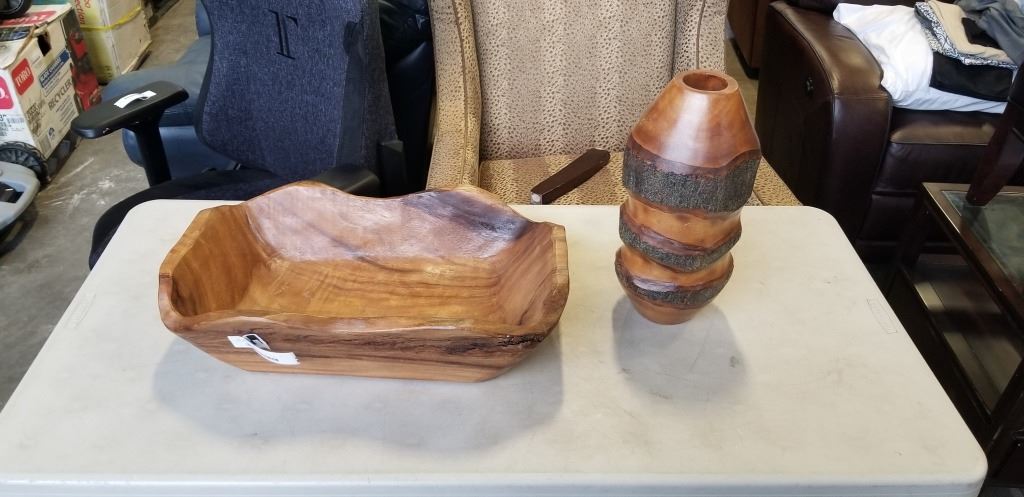 DECORATIVE WOOD VASE AND BOWL