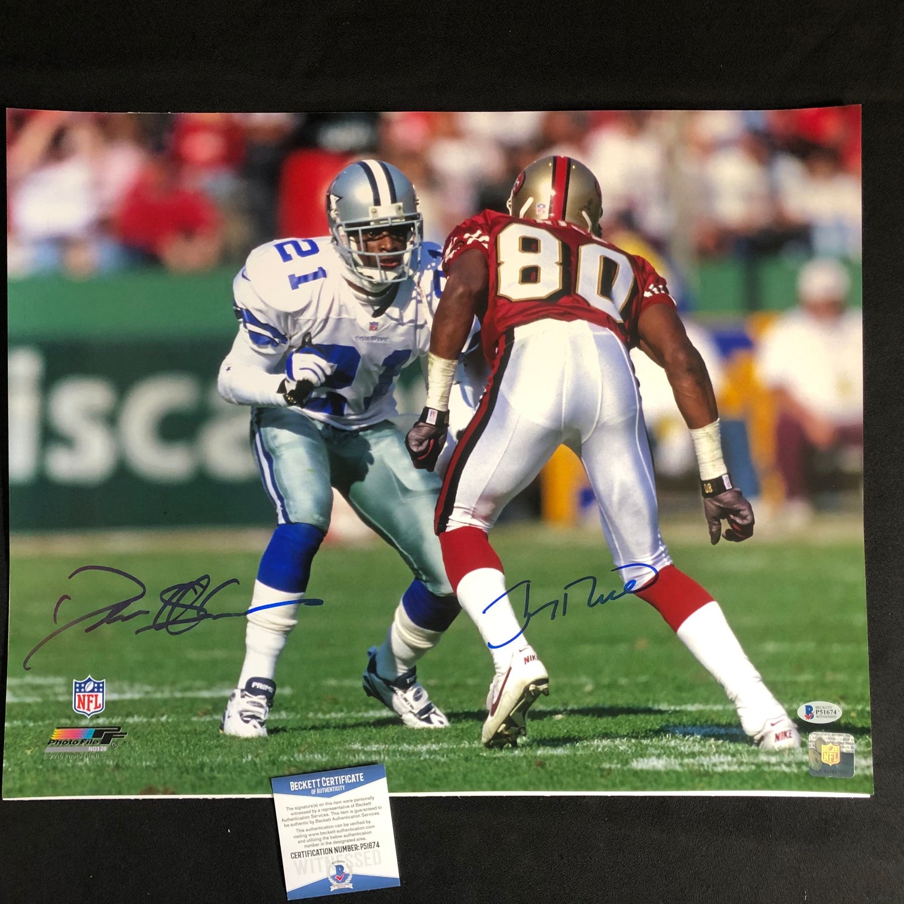 DEON SAUNDERS AND JERRY RICE SIGNED 16 X 20 BECKETT COA
