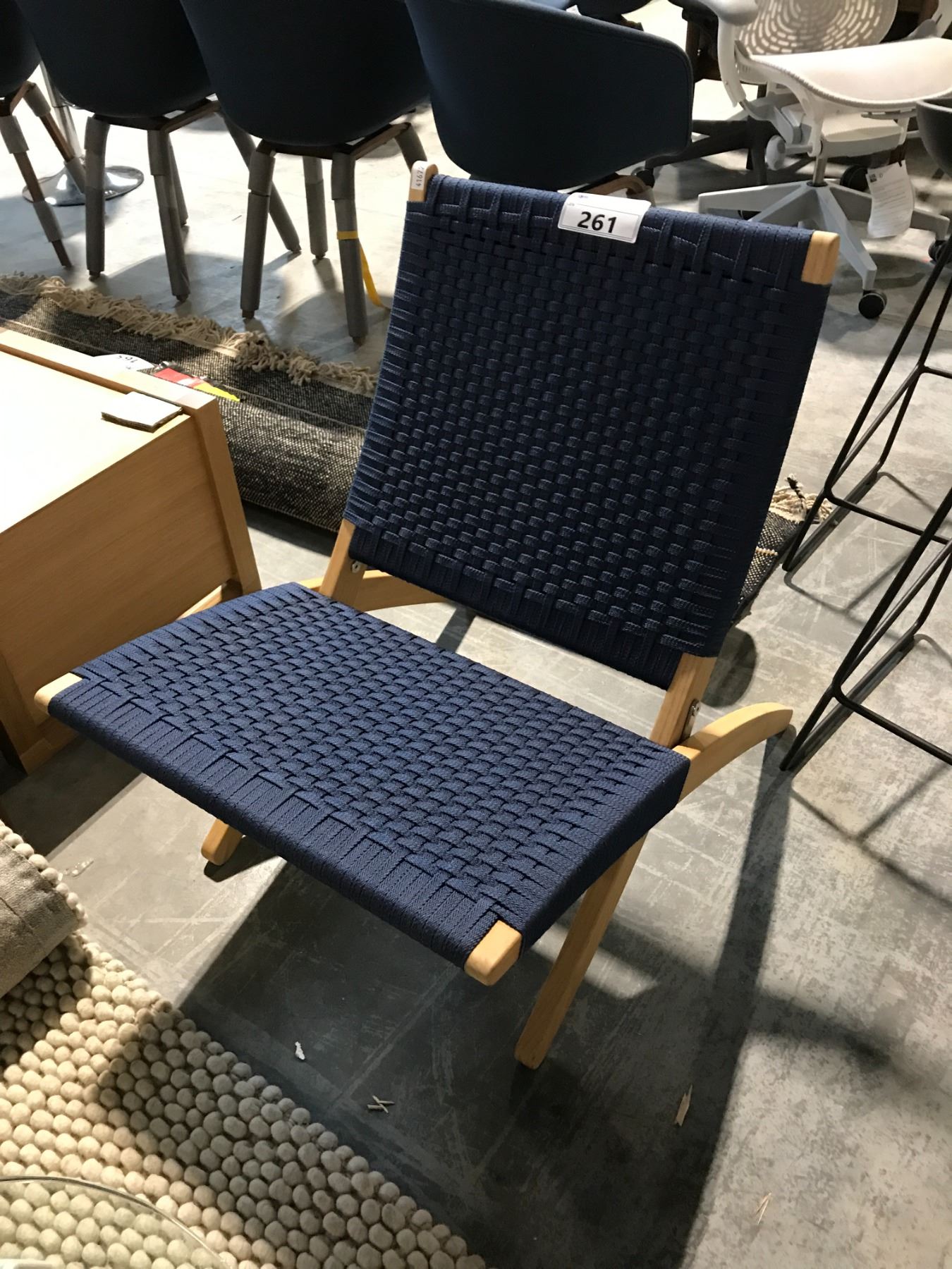DESIGN WITHIN REACH BLUE/TEAK FOLDING PATIO CHAIR