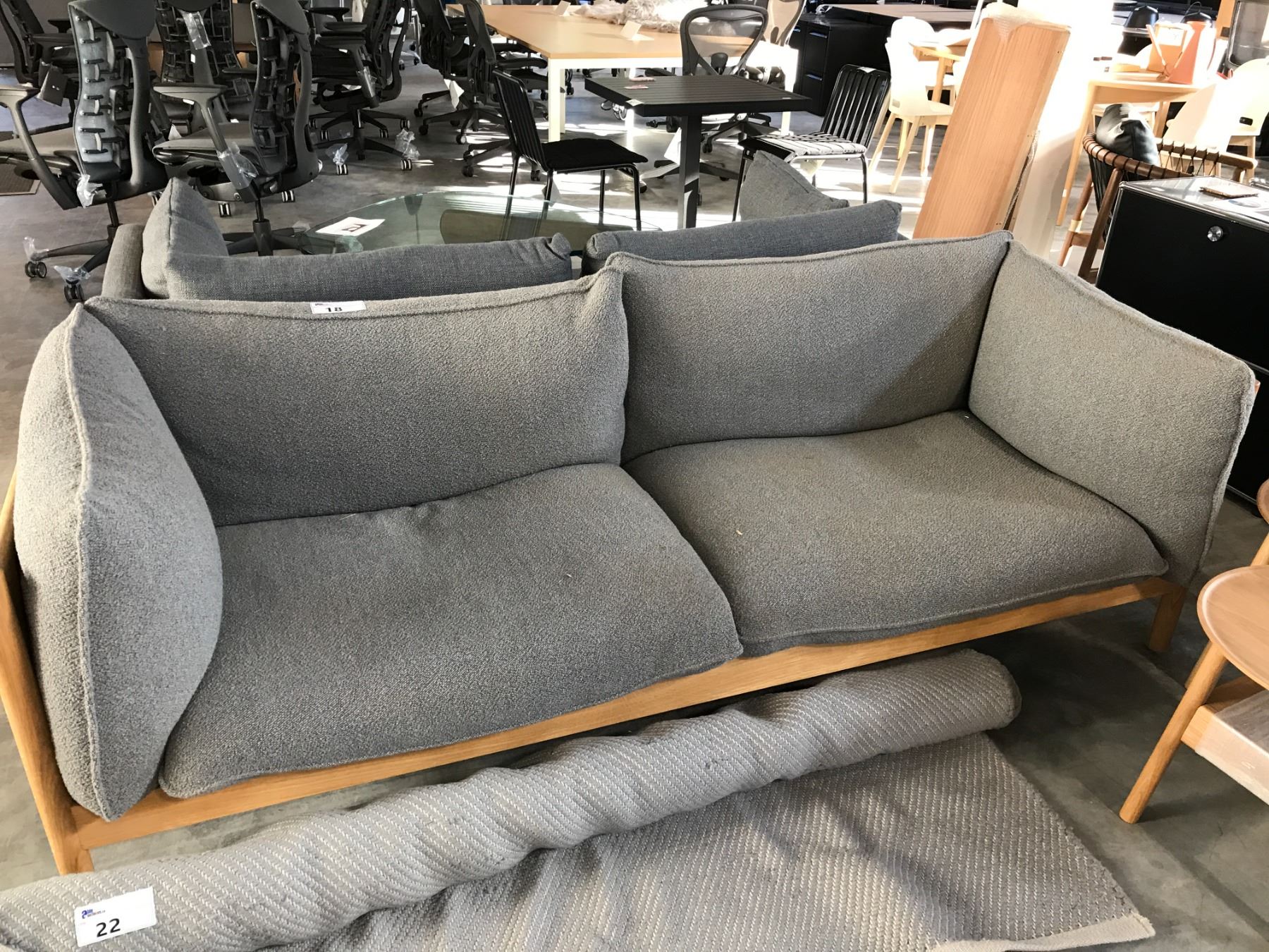 DESIGN WITHIN REACH GREY/NATURAL OAK FRAME 87" SOFA