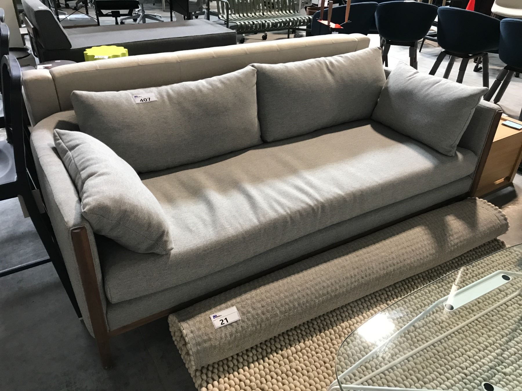 DESIGN WITHIN REACH JONAS LIGHT GREY 83" W 3 SEAT SOFA - BROKEN FRONT LEG