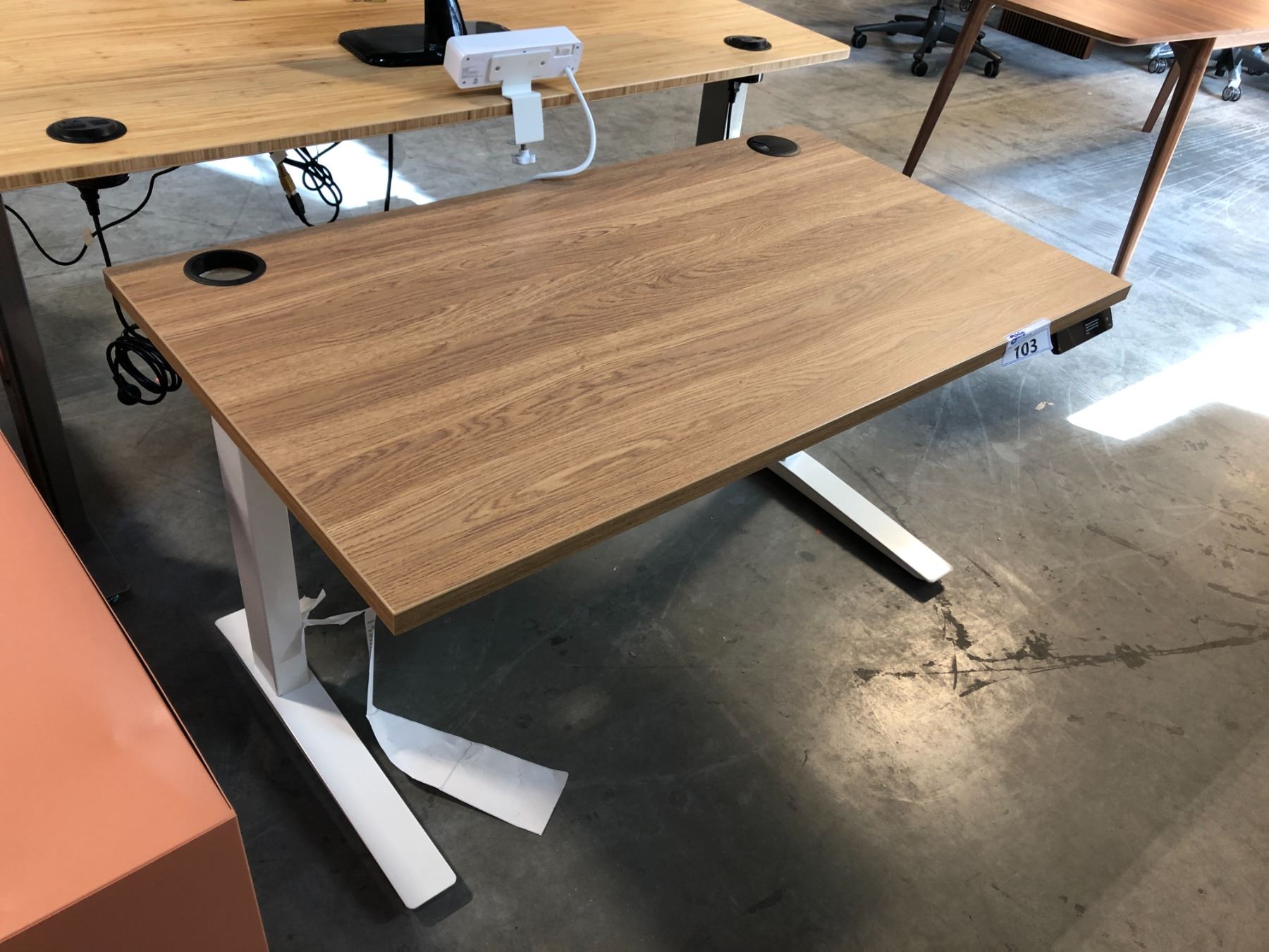 DESIGN WITHIN REACH RENEW SIT-TO-STAND ELECTRIC DESK, WALNUT 48" X 30" RETAIL VALUE $3,890.00