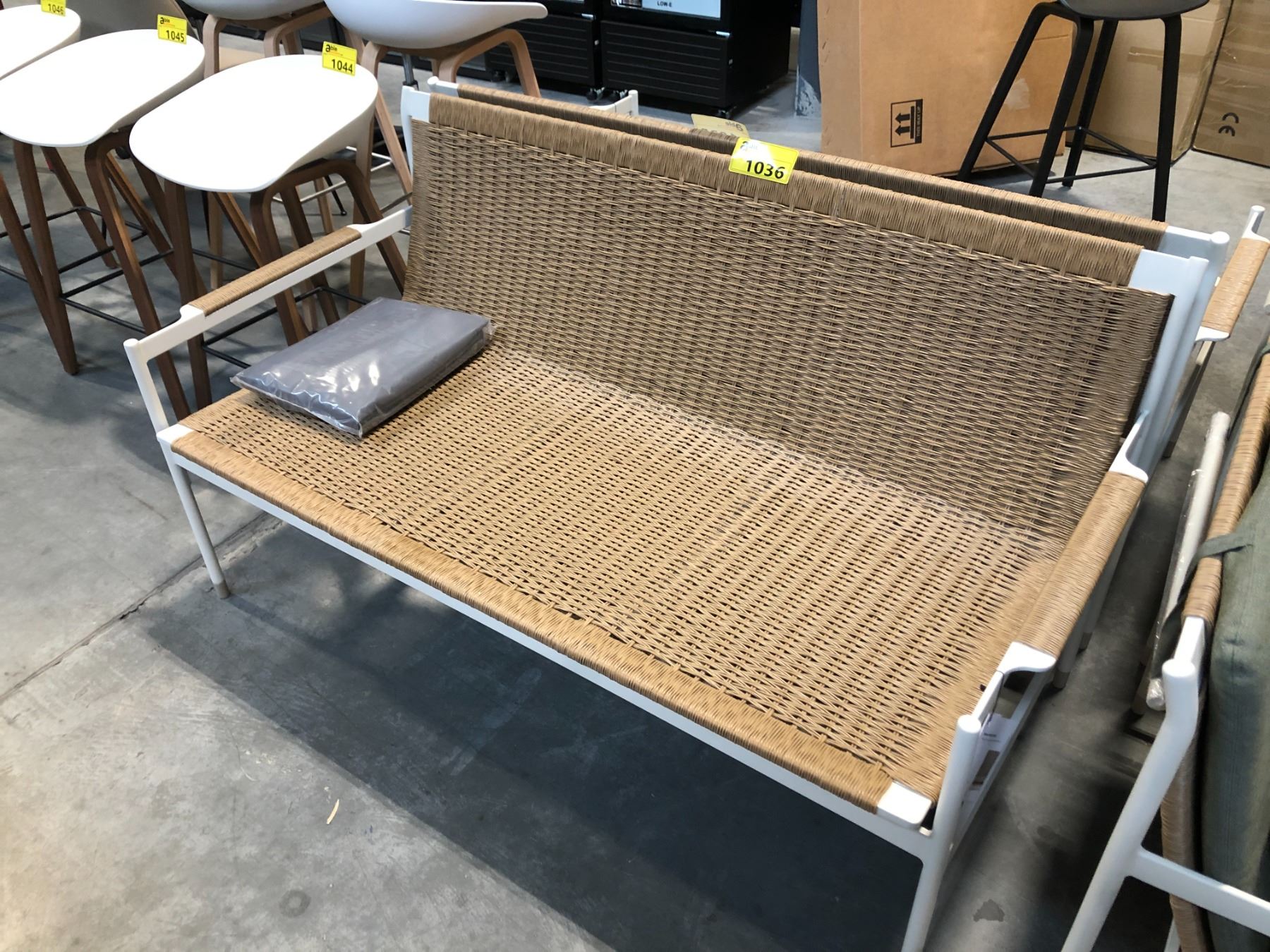 DESIGN WITHIN REACH SOMMER OUTDOOR COLLECTION 2 SEAT SOFA WITH COVER, RETAIL VALUE $3,260