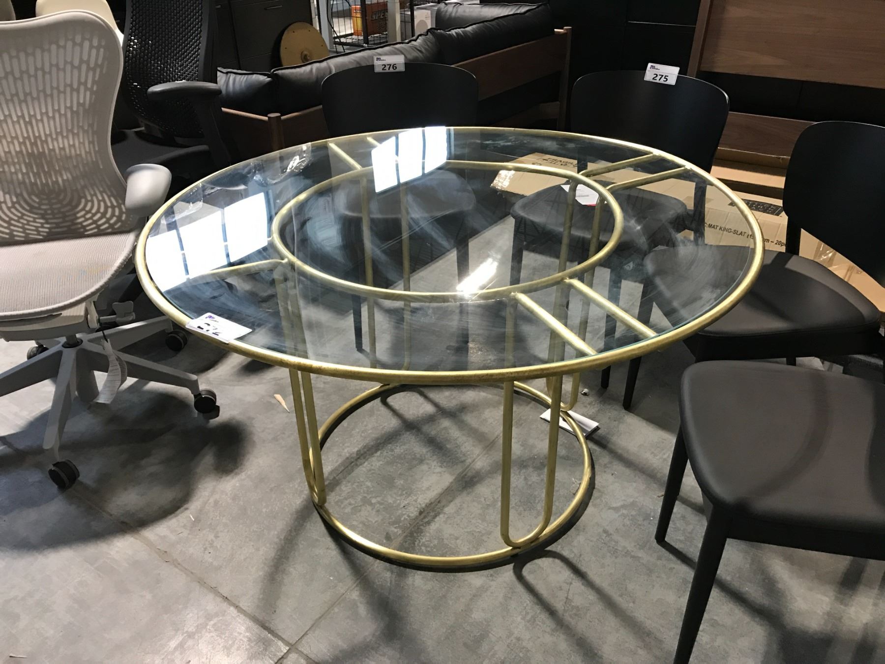 DESIGN WITHIN REACH WALTER LAMB BRASS/GLASS 53" DIAMETER DINING TABLE