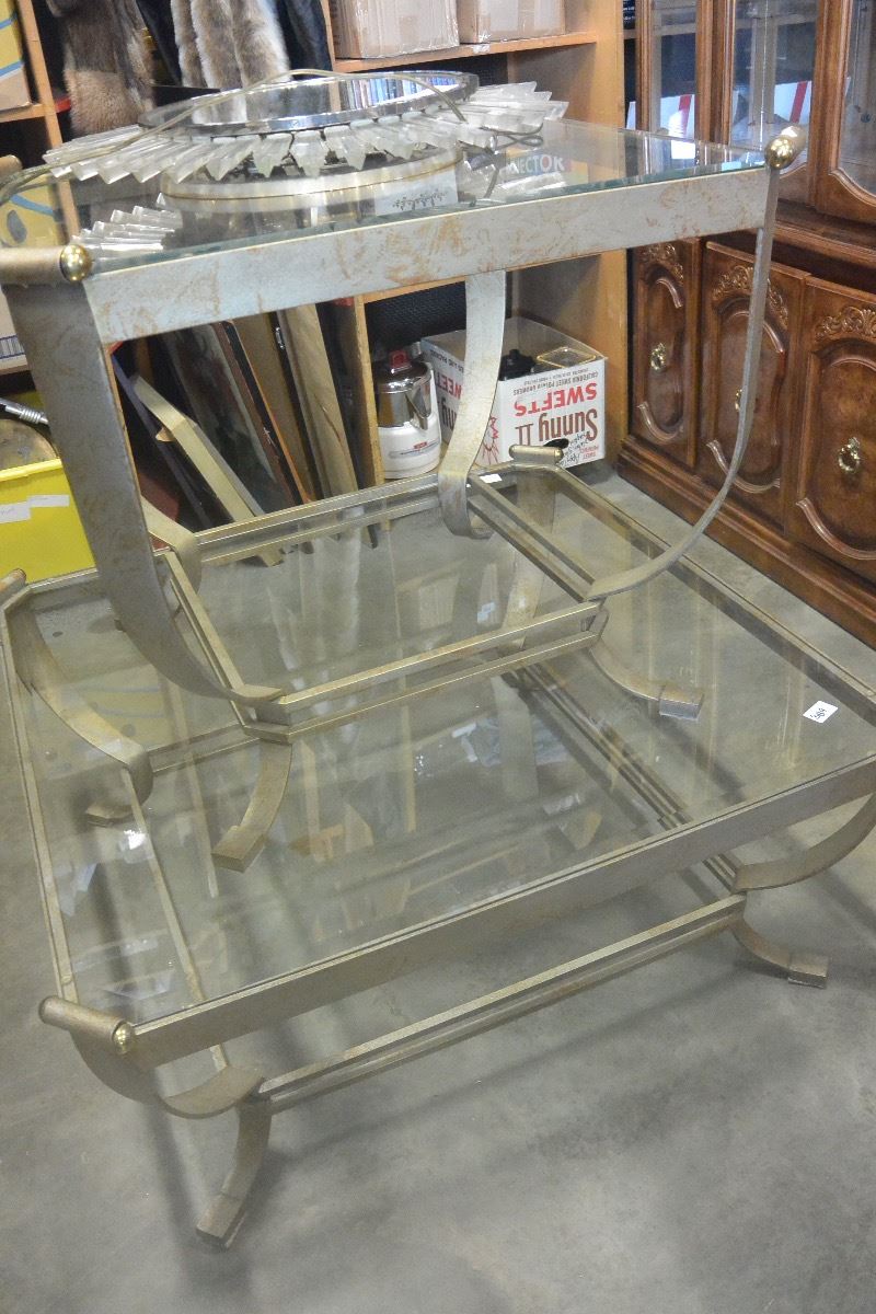DESIGNER GLASS TOP COFFEE TABLE AND ENDTABLE