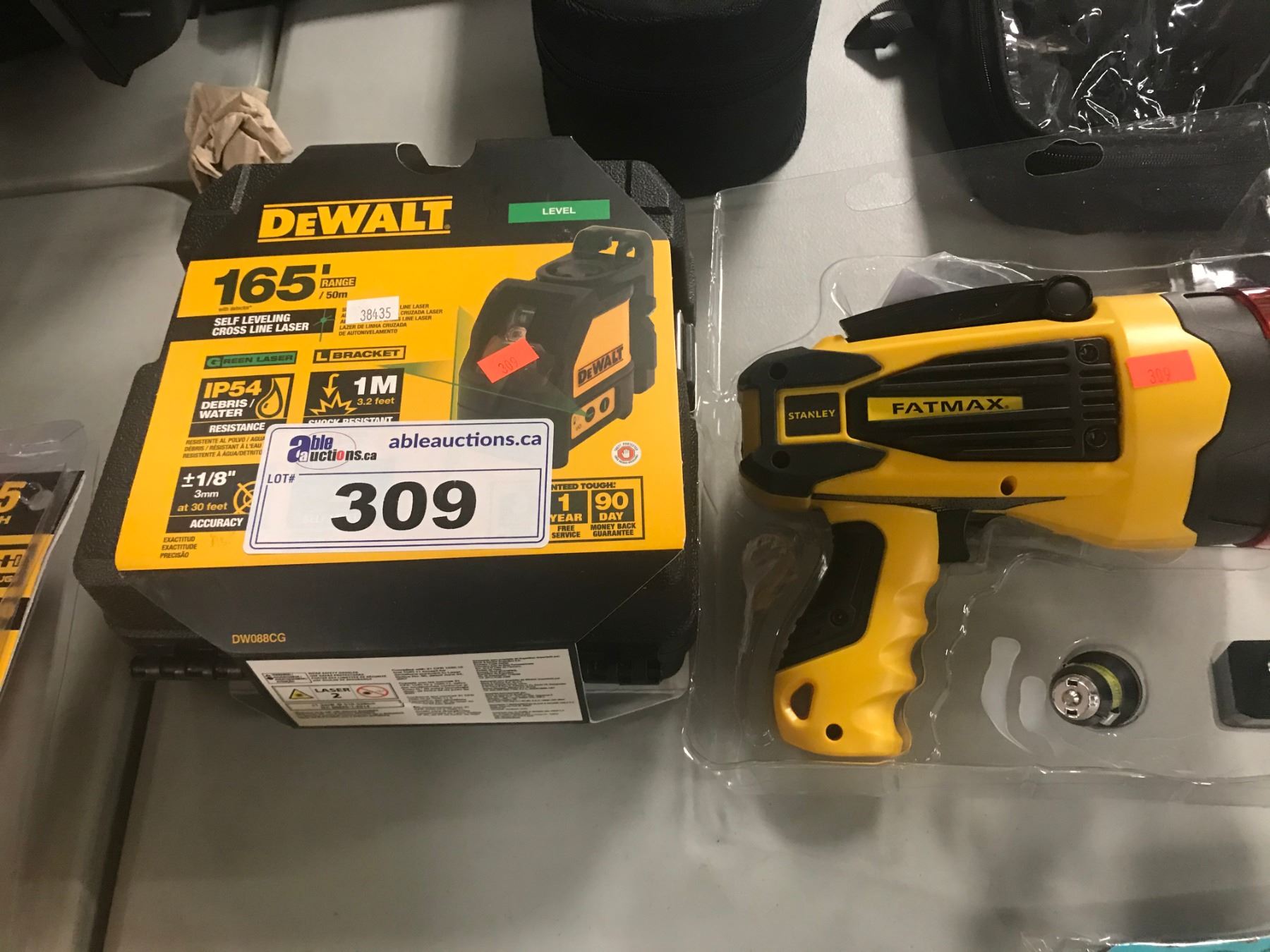DEWALT 165' RANGE SELF LEVELING CROSS LINE LASER & STANLEY FATMAX LIGHT