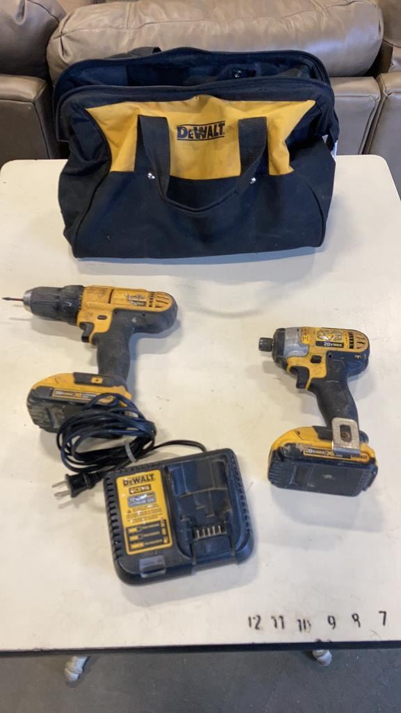 DEWALT 20V MAX CORDLESS TOOL SET - INCLUDES 2 IMPACT GUNS, 2 BATTERIES AND CHARGER - TESTED WORKING