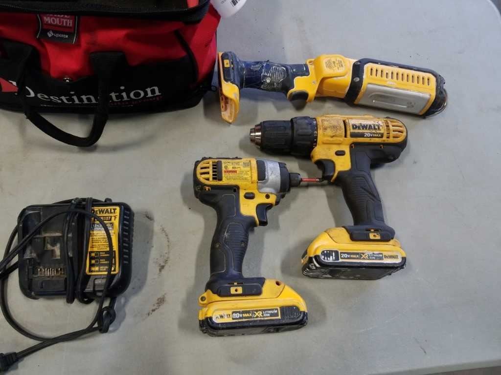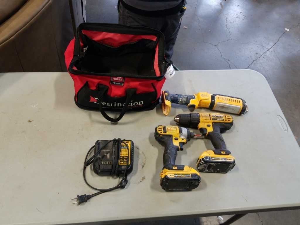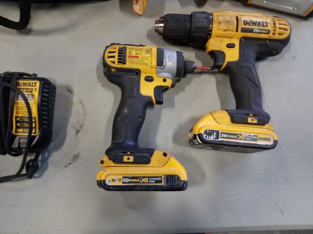 DEWALT 20VMAX CORDLESS TOOLS SET - INCLUDES DRILL/DRIVER, IMPACT GUN, FLASHLIGHT, 2 BATTERIES AND CHARGER - TESTED WORKING