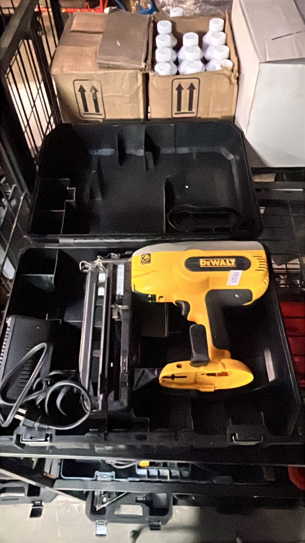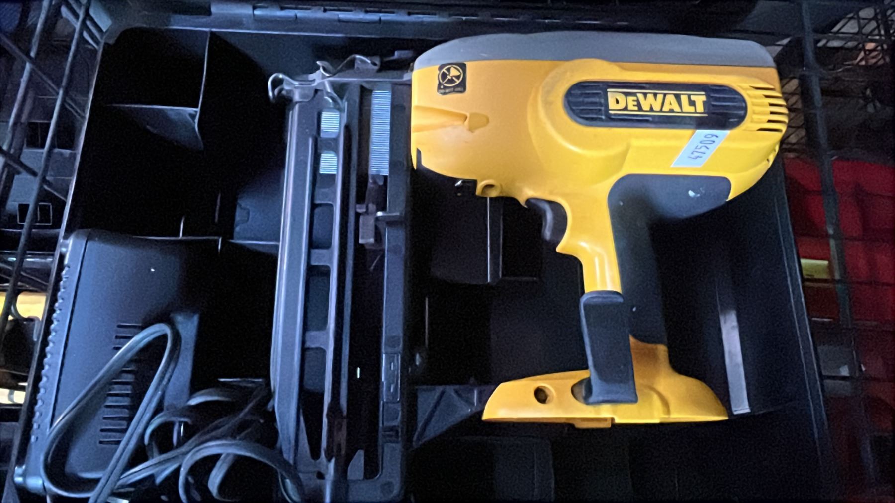 DEWALT CORDLESS NAIL GUN WITH CHARGER IN A HARD TRANSPORT CASE *NO BATTERY*