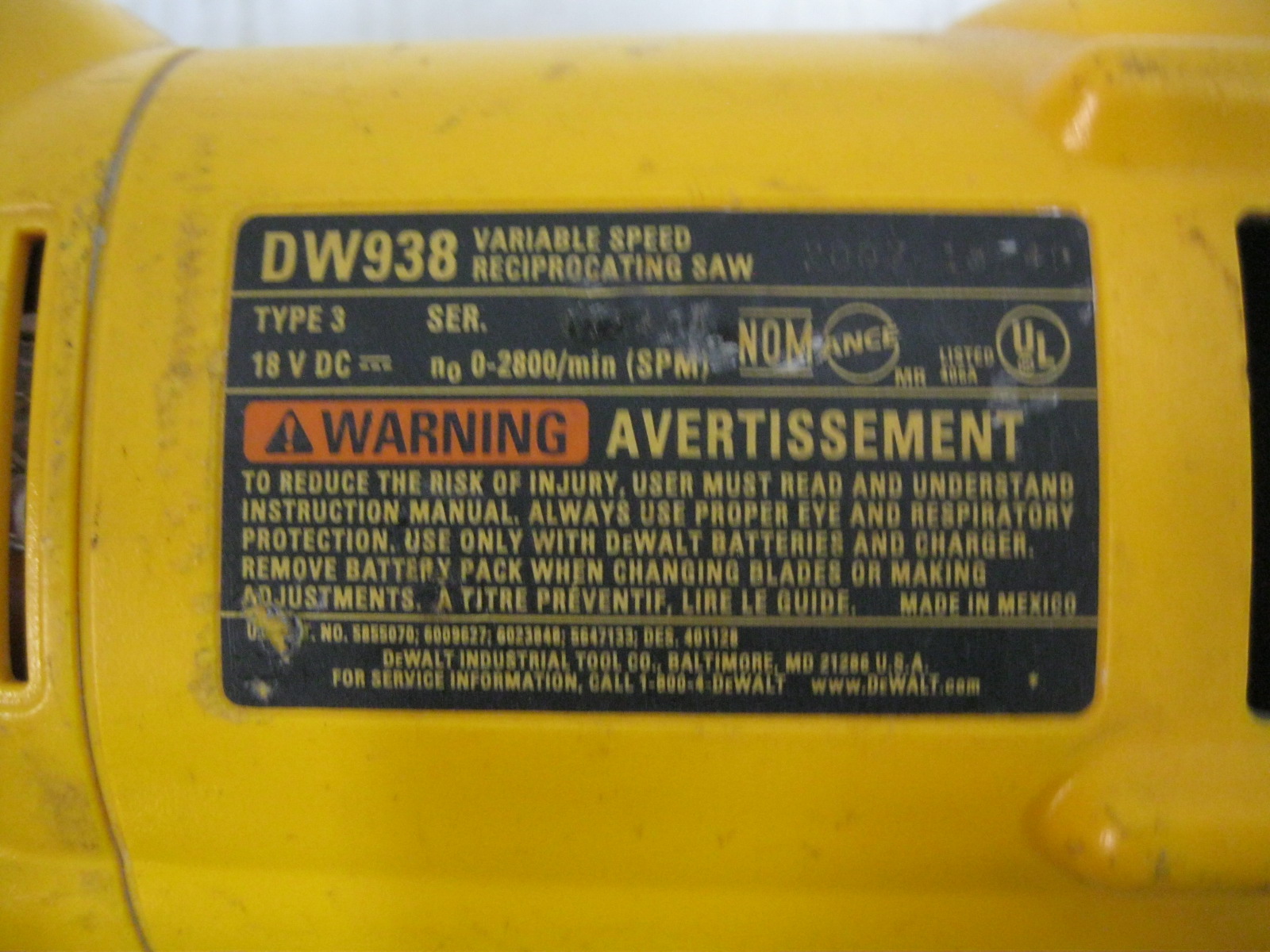 DEWALT CORDLESS SAWZALL & A CORDLESS CRIMPER - NO BATTERIES