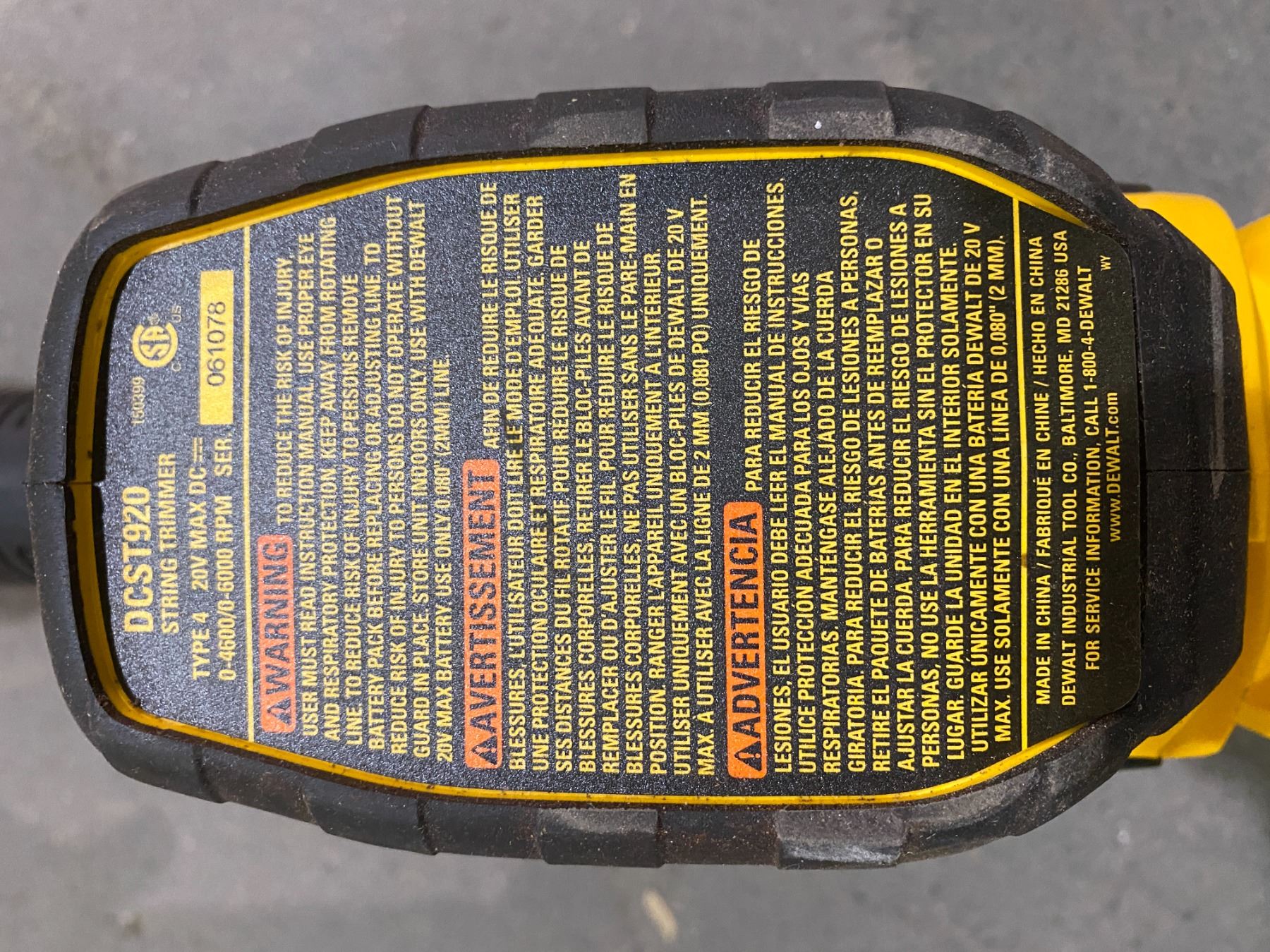 DEWALT CORDLESS STRING TRIMMER DCST920 WITH BATTERY & SCRUB BRUSH, NO CHARGER