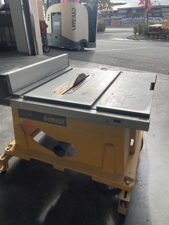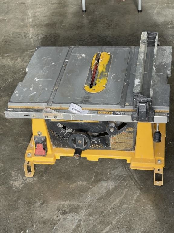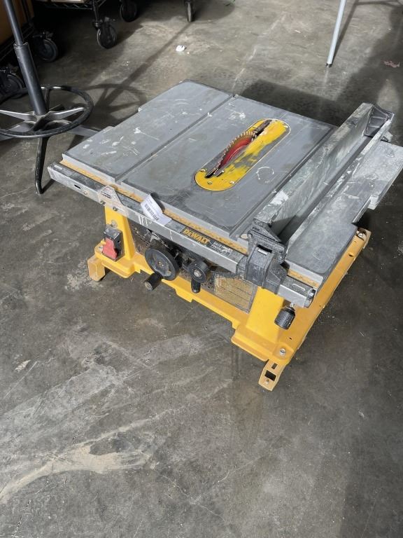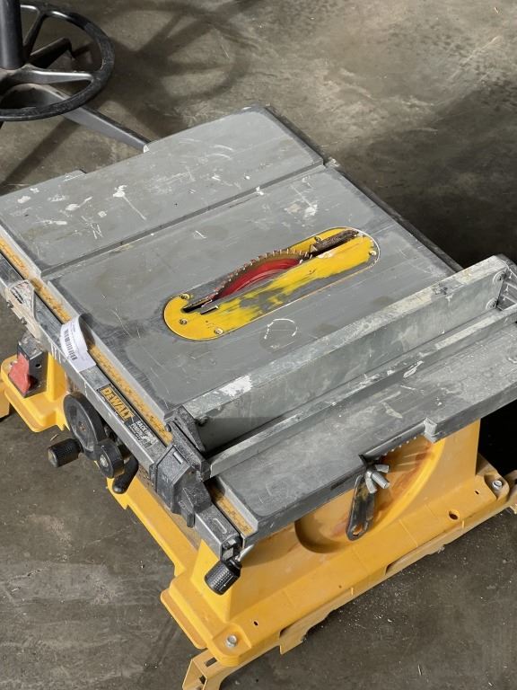 DEWALT DW744 10 INCH PORTABLE TABLE SAW WITH STAND BRACKETS AND DIABLO FINISH CUT BLADE, TESTED WORKING