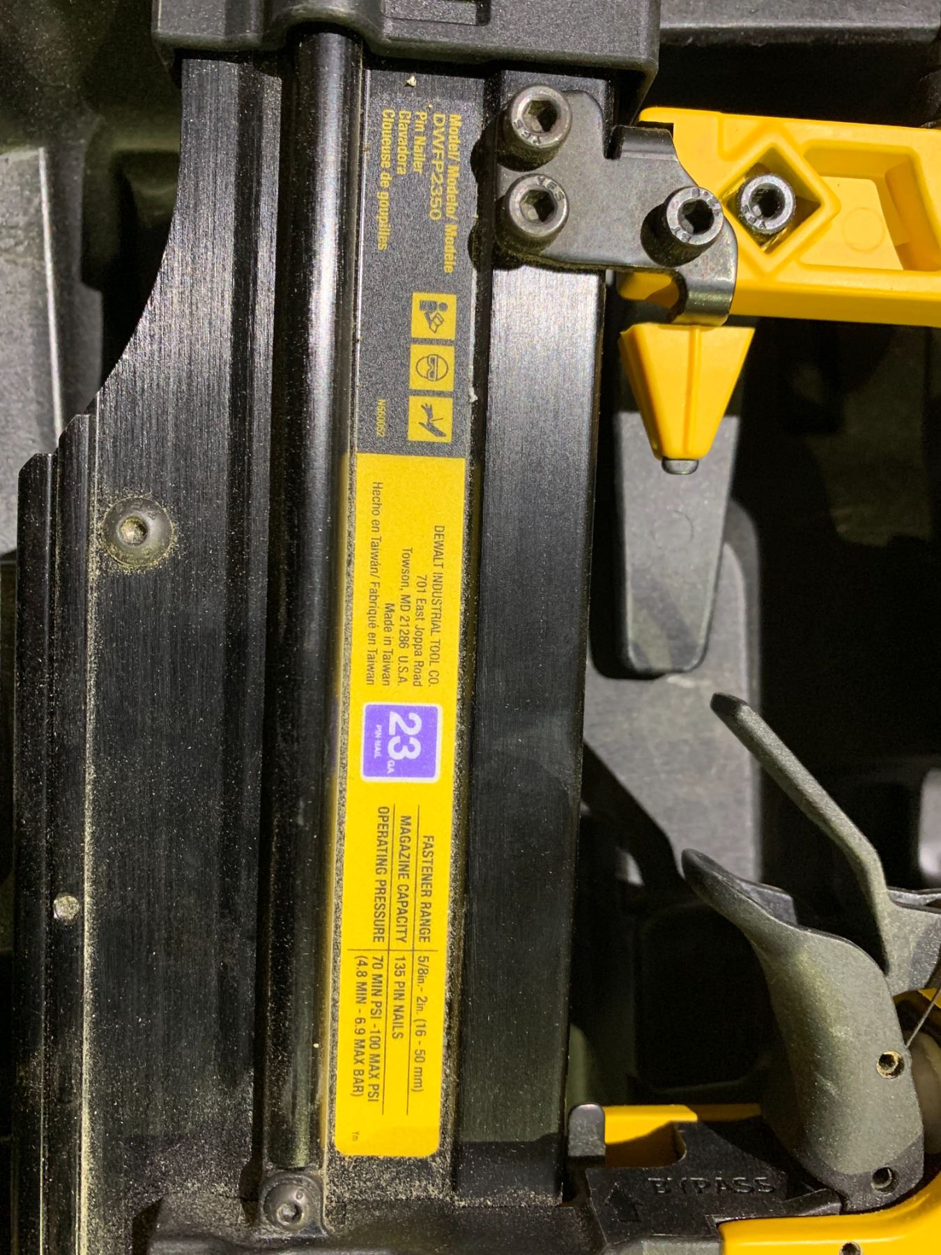 DEWALT DWFP2350 PIN NAILER WITH CASE & BOX OF DEWALT 23 GA MICRO PIN NAILS