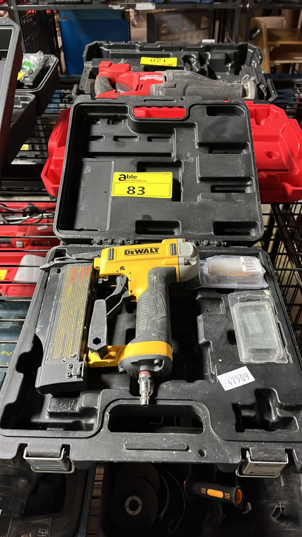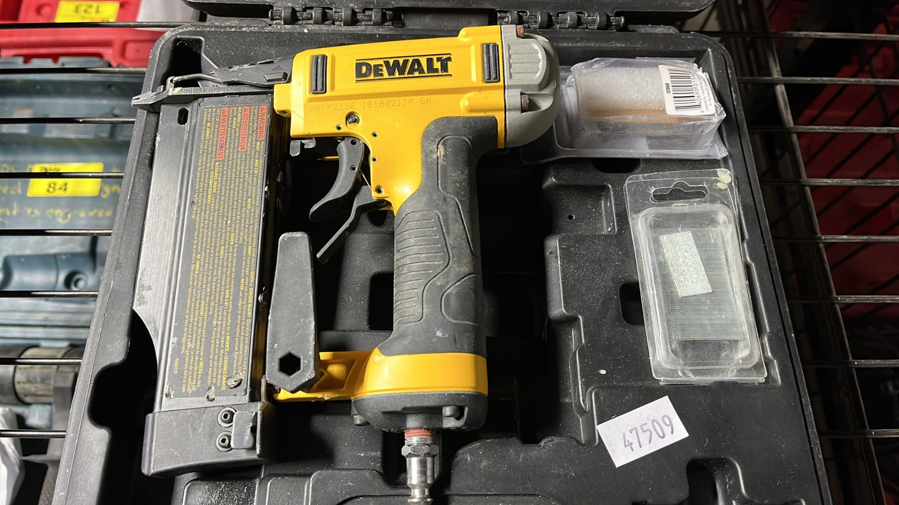 DEWALT DWFP2350 PNEUMATIC PIN NAILER IN A HARD TRANSPORT CASE