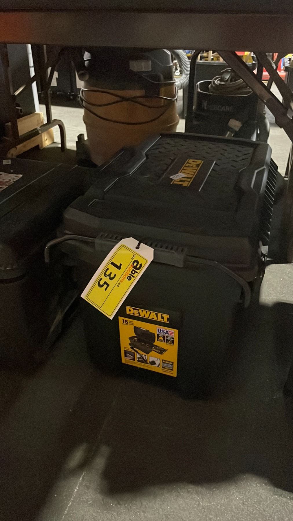 DEWALT PORTABLE PLASTIC INDUSTRIAL MOBILE TOOL BOX WITH ASSORTED CORDLESS POWER TOOLS & CONTENTS