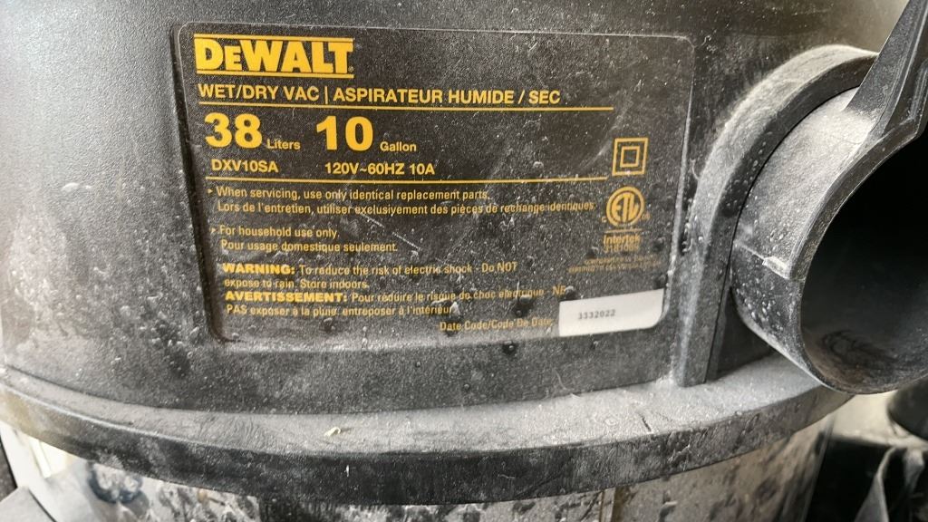 DEWALT STAINLESS 10 GALLON STAINLESS SHOP VAC WITH ACCESSORIES TESTED AND WORKING