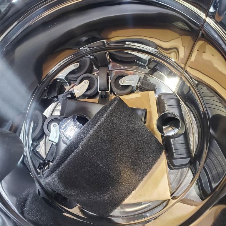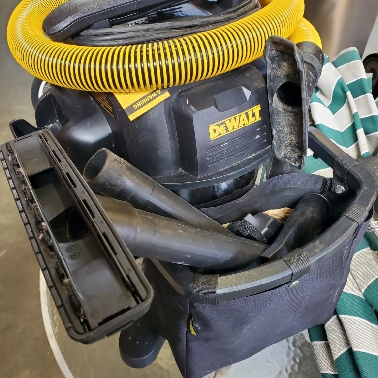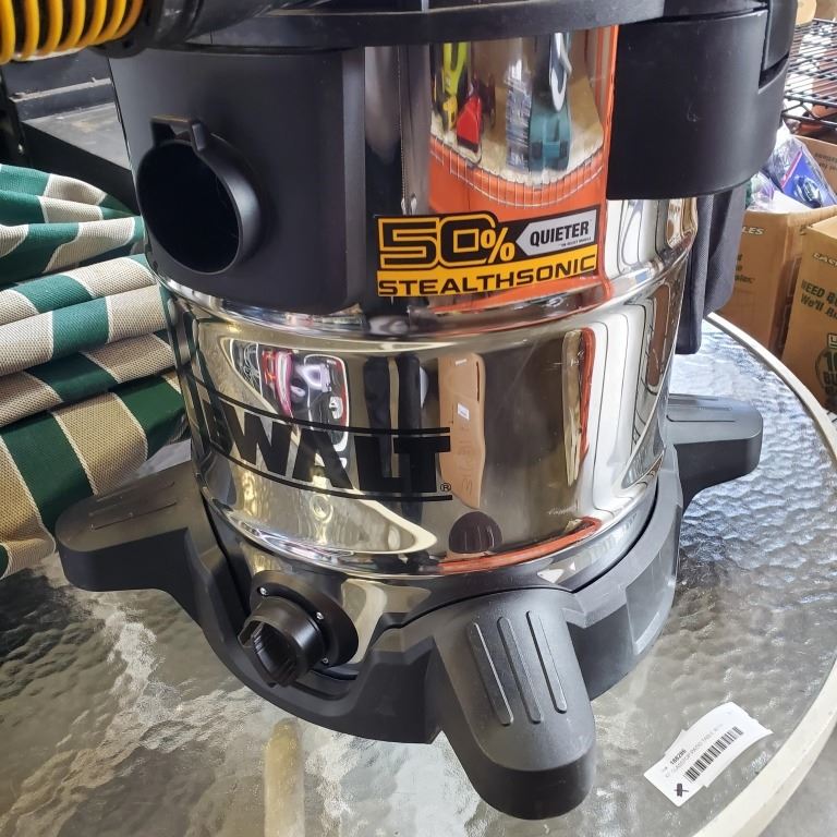 DEWALT STAINLESS 10L WET/DRY SHOP VAC TESTED WORKING WITH HOSE AND ACESSORIES WHEELS INSIDE